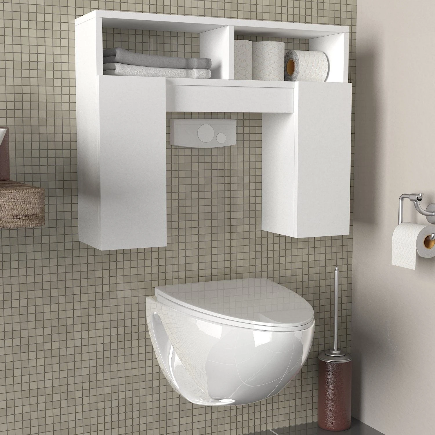 Furny Home Badkamerk- En Toiletkast | 100% Gemelamineerd Spaanplaathout Van 18 Mm Dik | 19,5 X 76,2 X 60,8 Cm | Wit