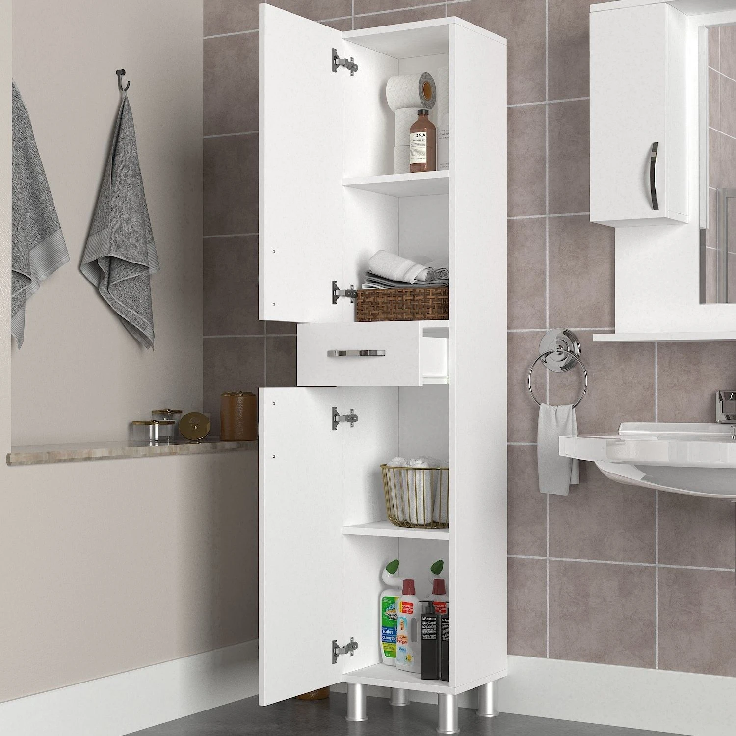 Furny Home Badkamermeubel | 100% Melaminegecoat Met Spaanplaathout Van 18 Mm Dik | 31,30 X 35 X 179 Cm | Wit