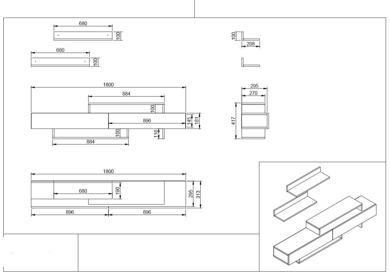 Furny Home TV-meubel is een 100% gemelamineerd spaanplaat met een dikte van 18mm en een afmeting van 180cm breed, 41cm hoog. Verkrijgbaar in wit teak kleur