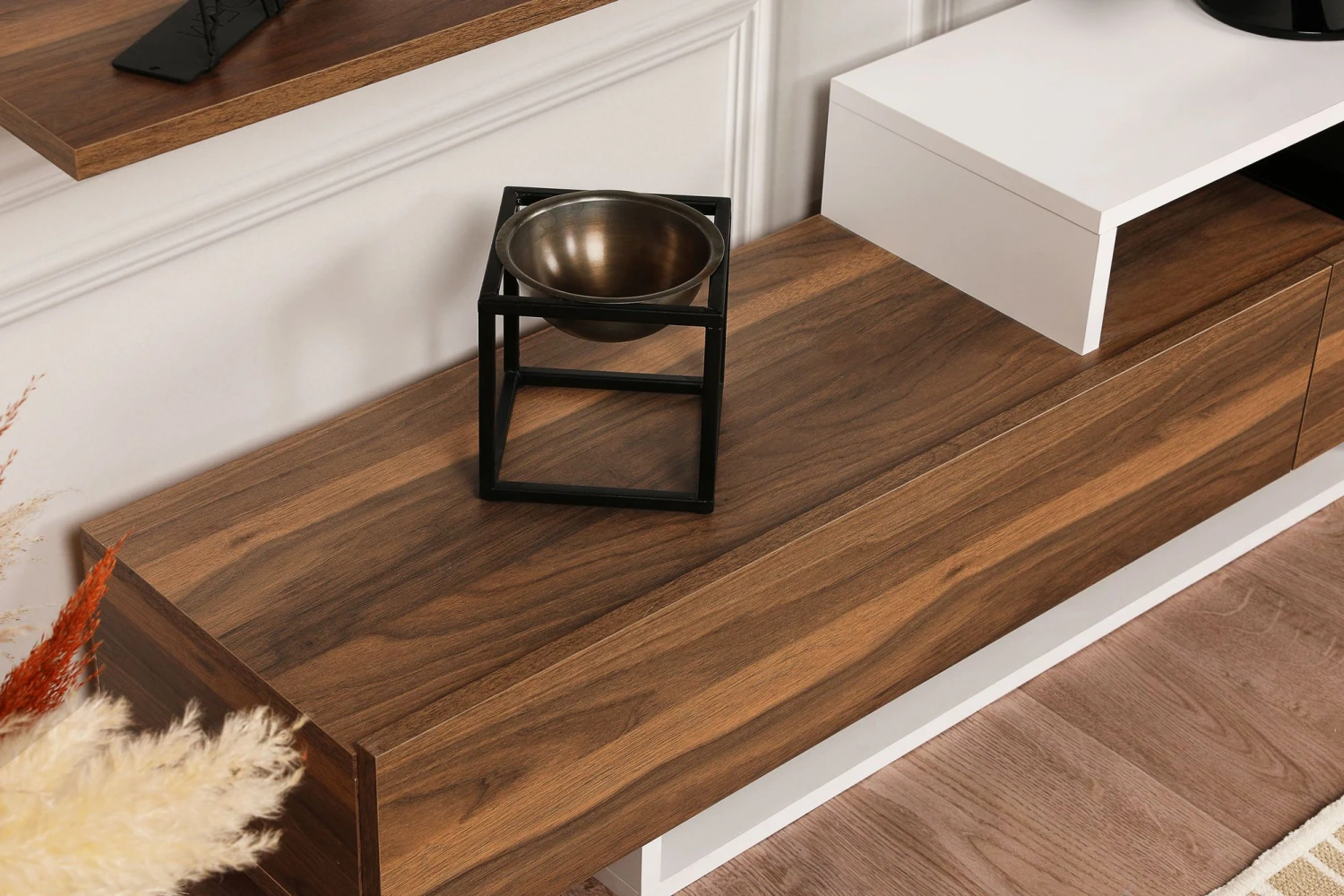Furny Home TV-meubel | 100% Gemelamineerd Board | 180 Cm Breedte | Wit Teakhout