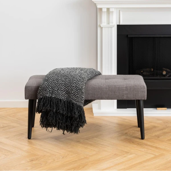 Halbankje Gloria Zwart Stalen Onderstel, Getuft 95x38x45 Cm – Grijs