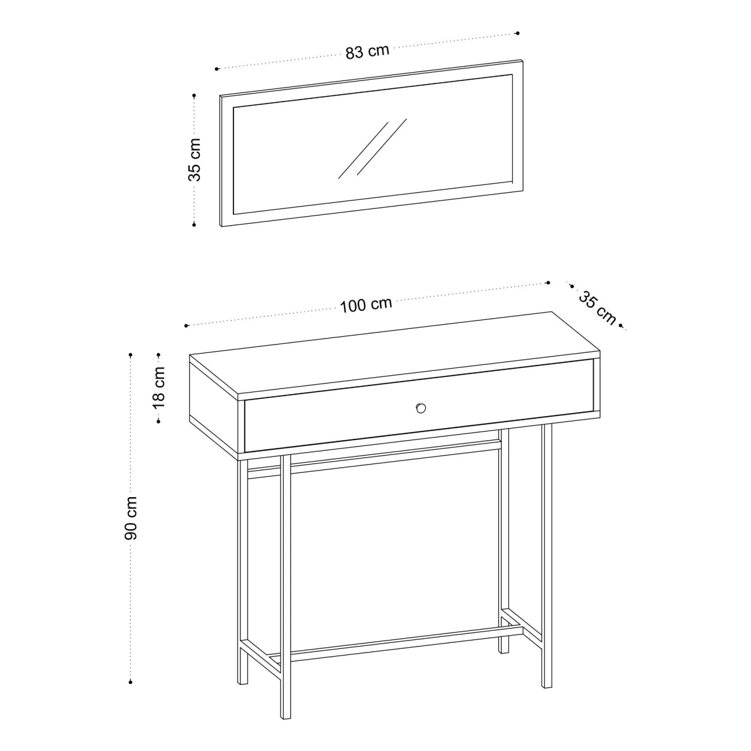 Dressoir Emerald: Stijlvol saffier eiken zwart dressoir met melamine gecoate spaanplaat, afmeting 100x90x35 cm, voorzien van een spiegel van 83×35 cm.