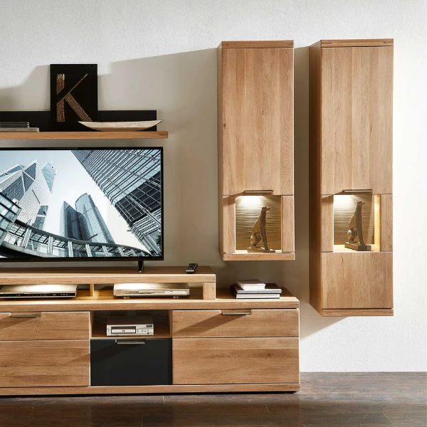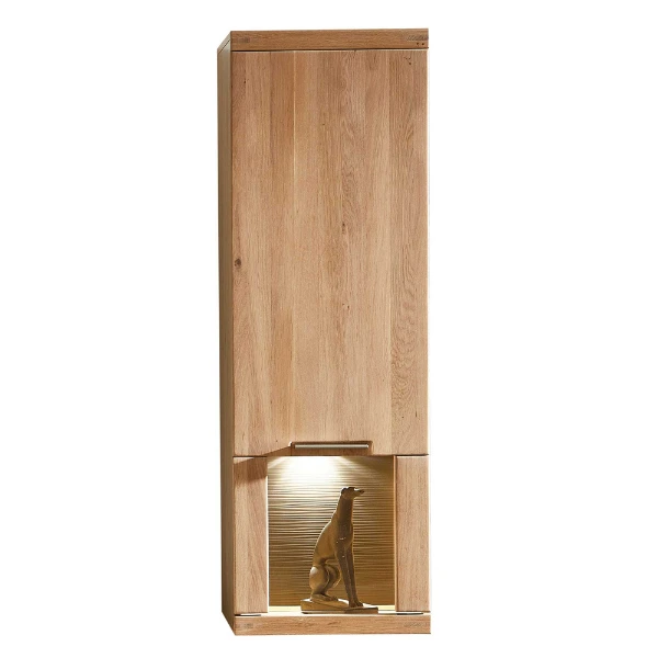 Hangkast Blanka 40x37x123cm uit spaanplaat en MDF. Afwerking in imitatie-eik. Inclusief LED-verlichting.