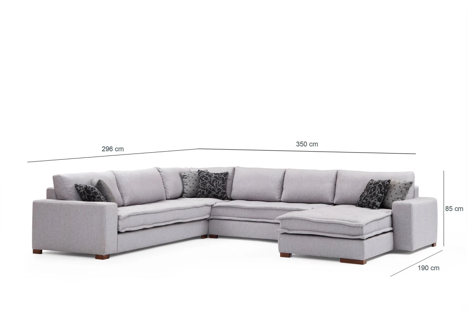 Hoekbank Artie | Beuken/Chipboard Frame | Lichtgrijs Polyester | 296x350x190cm
