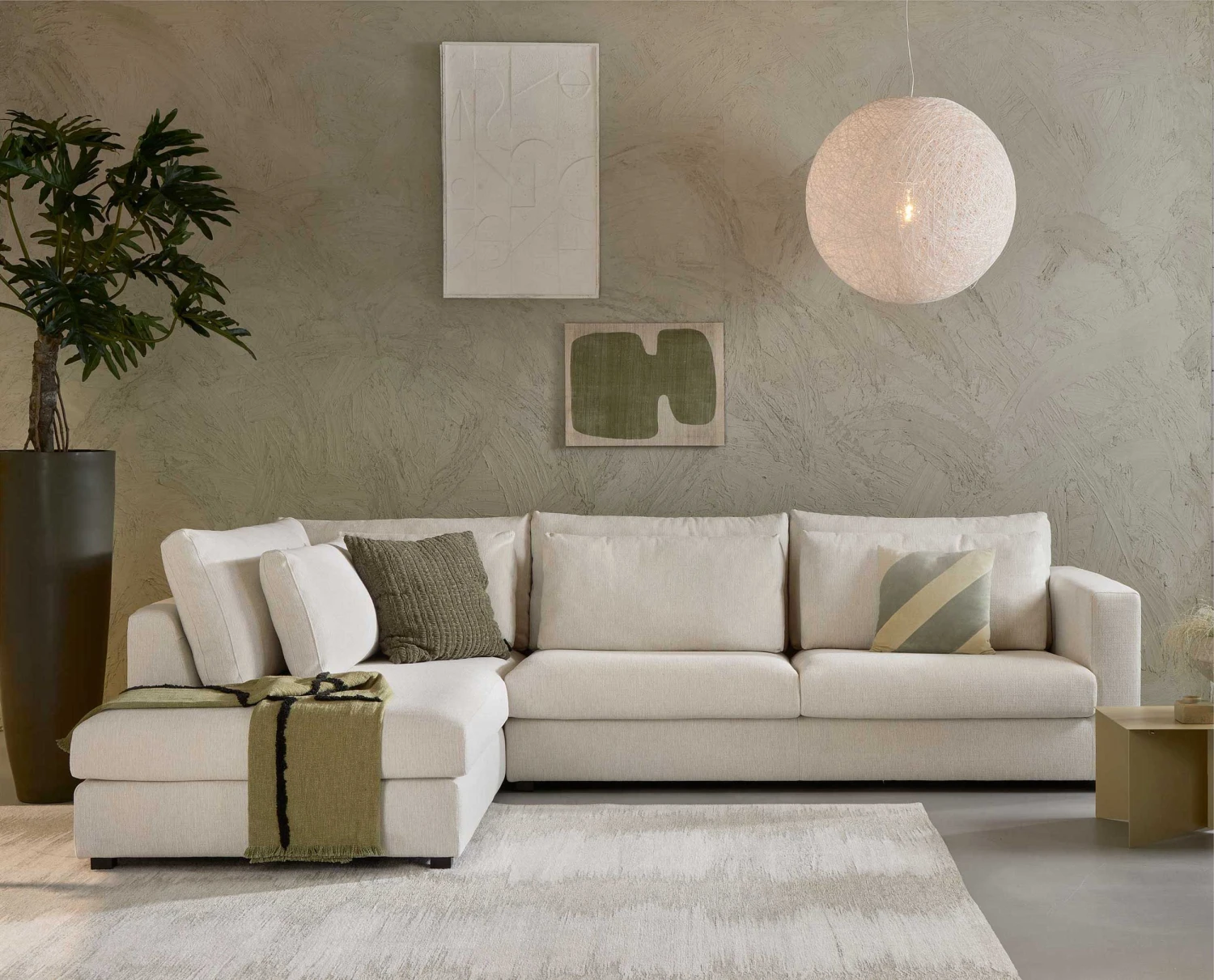 De Verita-hoekbank beschikt over een prachtig simpel design in de klassieke stijl. Je kan deze hoekbank perfect combineren met verschillende interieurstijlen zoals; klassiek, modern, landelijk romantisch en Scandinavisch. De hoekbank is bekleed met een zachte, beige stof en gevuld met koudschuim. De Verita-hoekbank is geschikt voor drie tot vier personen en meet 331 cm lang op 226 cm breed.