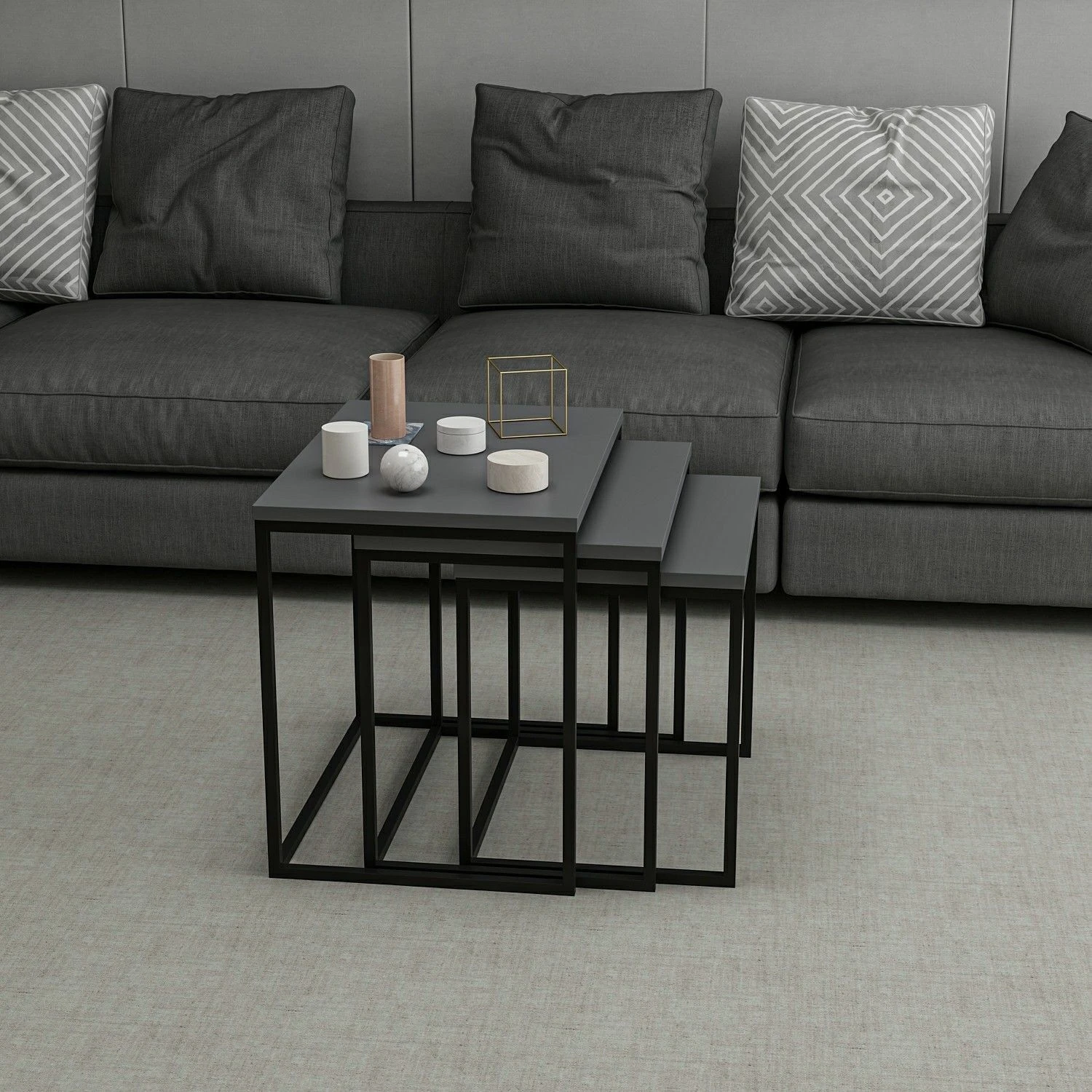De antracietkleur voegt een vleugje elegantie en verfijning toe aan elke inrichting. Of je deze tafels nu gebruikt als salontafel, bijzettafel of displaytafel, ze zullen zeker de algehele esthetische aantrekkingskracht van je woon- of werkruimte verbeteren.