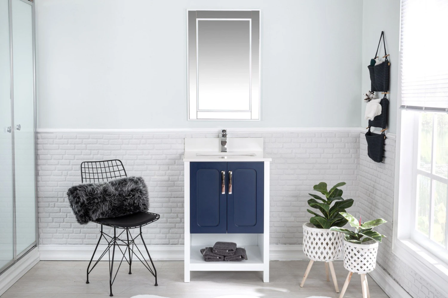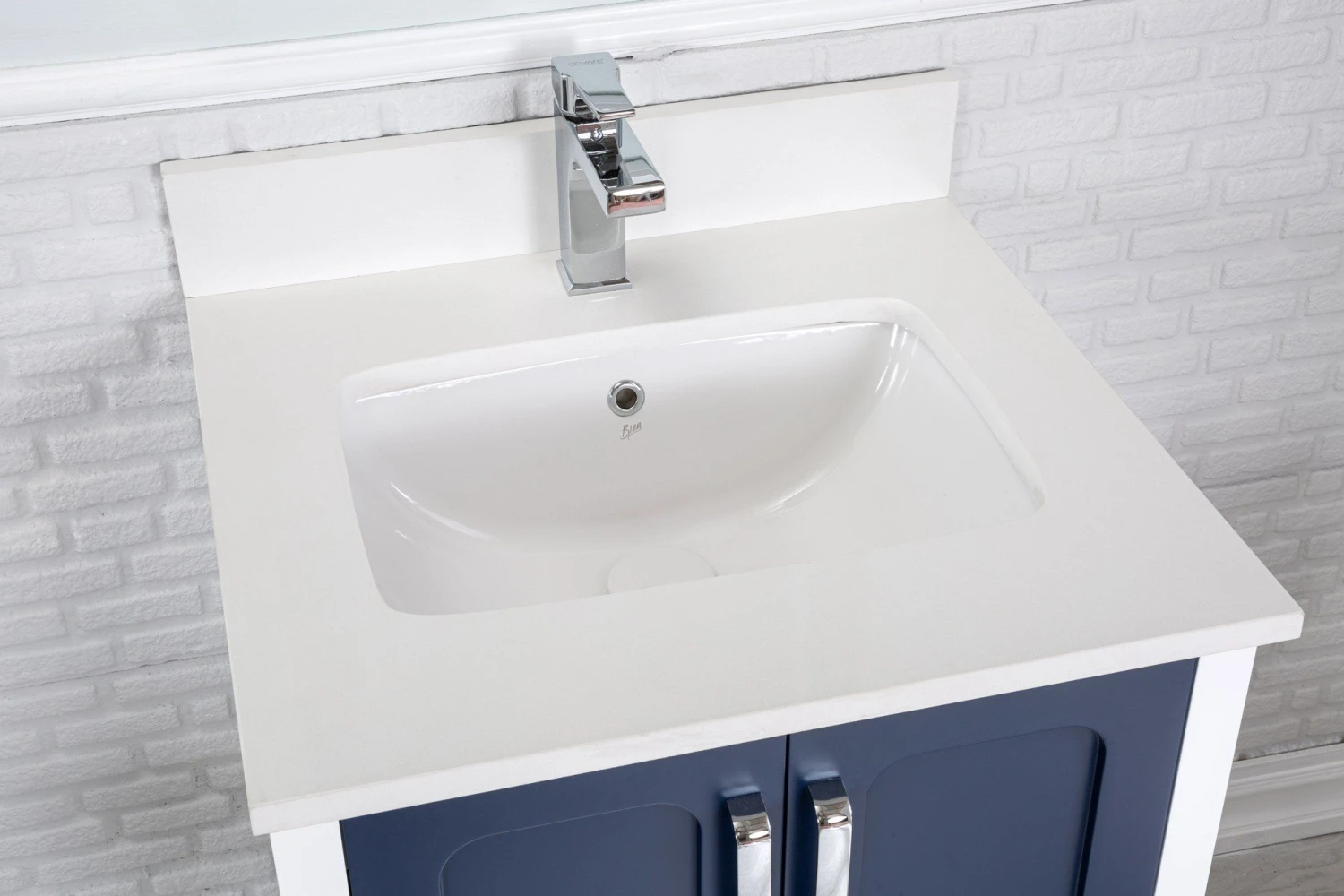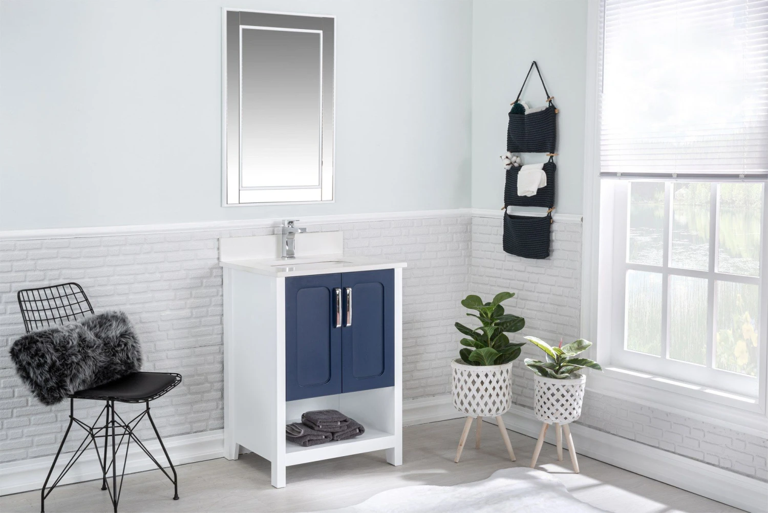 Jussara 2PC Badkamermeubelset | 100% Massief Hout | Kwarts Werkblad | Donkerblauw