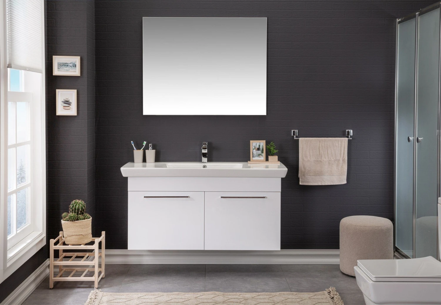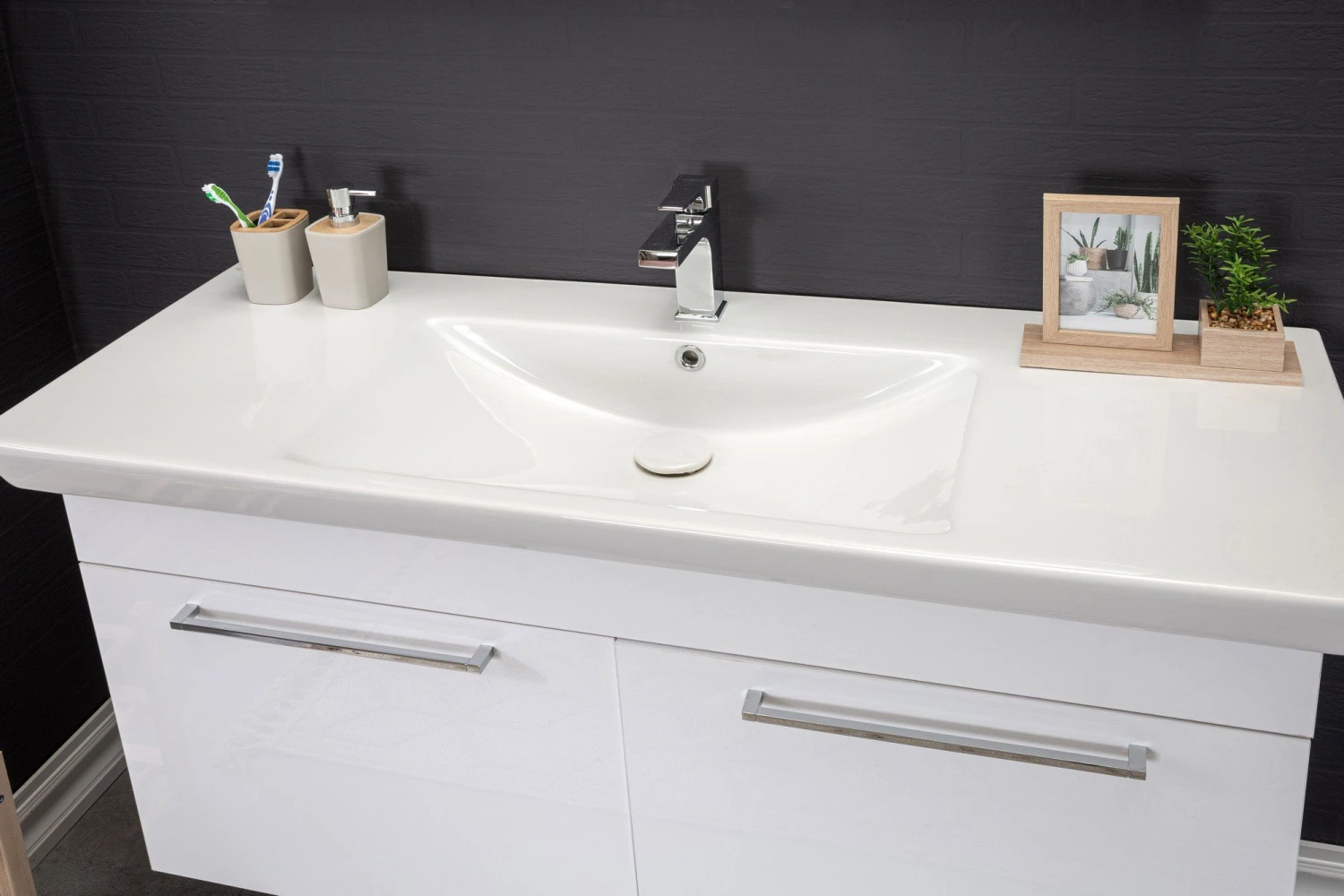 Maak kennis met de Jussara badkamermeubelset, een prachtige 3-delige set die met uiterste precisie is vervaardigd en ontworpen is om je badkamerinrichting naar een hoger niveau te tillen. Deze set is gemaakt van 100% MDF met melaminecoating en staat garant voor duurzaamheid en een lange levensduur, terwijl de massief houten constructie een vleugje elegantie en charme toevoegt. De wastafel in deze set is gemaakt van 100 eramic en biedt uitzonderlijke weerstand tegen krassen, vlekken en afschilferen. De slanke en glanzend witte afwerking is een aanvulling op het algehele ontwerp en creëert een naadloze en visueel aantrekkelijke look.Om een vleugje verfijning toe te voegen, is de Jussara badkamermeubelset versierd met chromen handgrepen. Deze slanke en moderne handgrepen dienen niet alleen als functionele accenten, maar versterken ook de esthetische aantrekkingskracht van het meubel.Met een flotale spiegel voegt deze set diepte toe en verbetert de algehele visuele aantrekkingskracht van je badkamer. Het reflecterende oppervlak van de spiegel voegt een gevoel van ruimte toe, waardoor je badkamer groter en uitnodigender lijkt.Uitgerust met een verborgen remsysteem zorgt deze set ervoor dat de kastdeuren stil en moeiteloos sluiten. Geen vervelende klapgeluiden meer die de rust in je badkamer verstoren. De Jussara badkamermeubelset is ontworpen voor wandmontage en biedt flexibiliteit en gemak bij de installatie. Het badmeubel in deze set heeft een breedte van 123 cm, een hoogte van 57 cm en een diepte van 36 cm, waardoor er voldoende opbergruimte is voor je badkamerbenodigdheden. De wastafel, met een breedte van 125 cm en een hoogte van 16 cm, biedt voldoende ruimte voor dagelijks gebruik.In een tijdloze witte kleur vult de Jussara badkamermeubelset moeiteloos elke badkamerinrichting aan. De neutrale tint creëert een schone en frisse sfeer, waardoor je badkamer een heiligdom van ontspanning wordt.Samengevat is de Jussara badkamermeubelset een must-have voor iedereen die een luxe en verfijnde badkamer wil creëren. Met zijn 100% melamine gecoate MDF constructie, 100 keramische wastafel, chromen handgrepen, flotale spiegel, verborgen remsysteem en ontwerp voor wandmontage, biedt deze set niet alleen uitzonderlijke functionaliteit maar ook verbluffende schoonheid. Upgrade je badkamer met de Jussara badkamermeubelset en verander je dagelijkse routine in een spa-achtige ervaring.