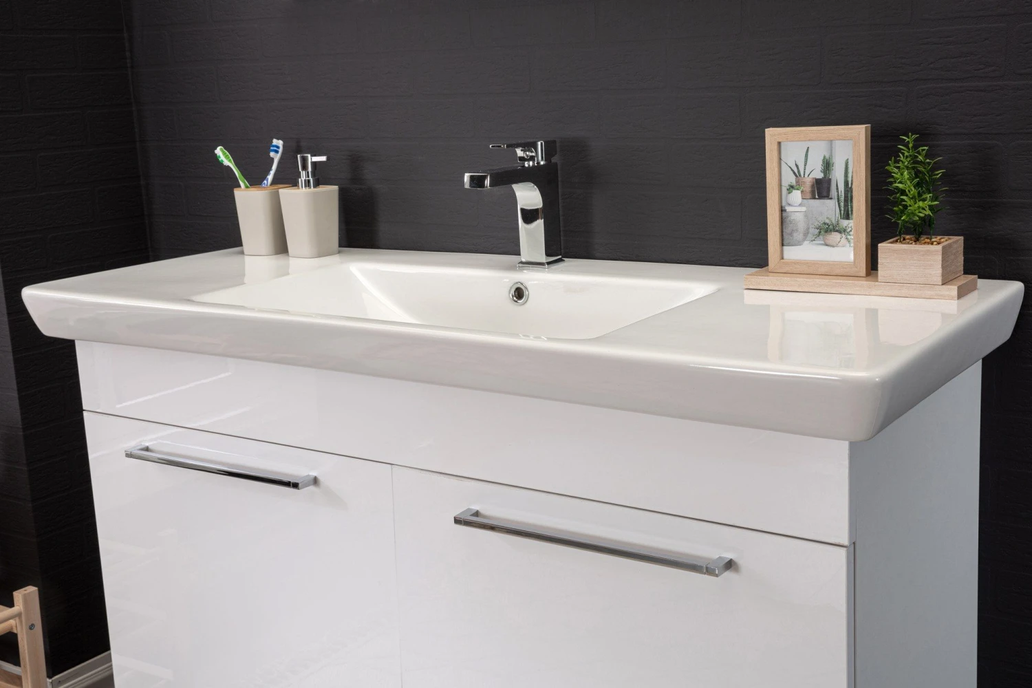 Jussara 3-delige Badkamermeubelset | 100% MDF Met Melaminecoating | Keramische Wastafel | Chroomgrepen | Wit