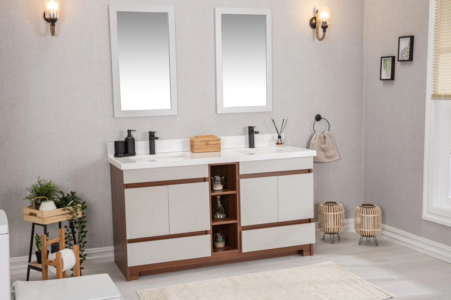 Jussara 3-delige Badkamermeubelset | Aanrechtblad Wit Kwarts | Crème | 150cm X 60cm