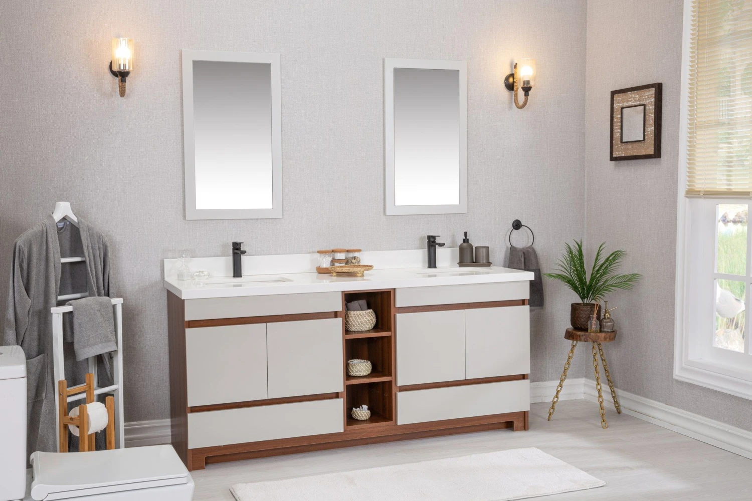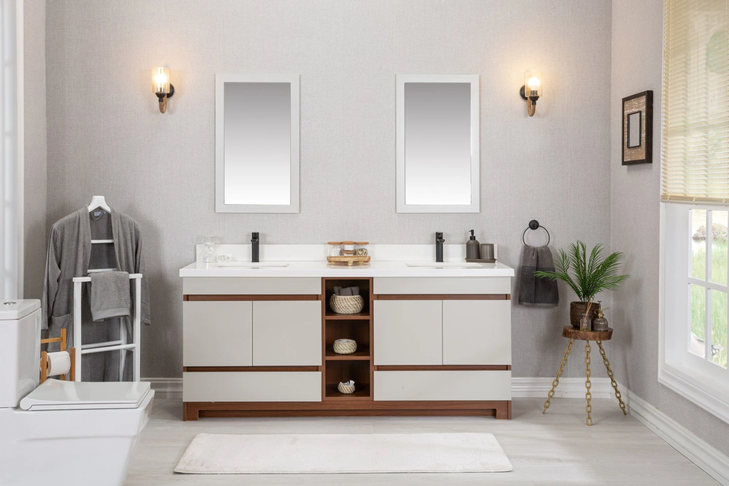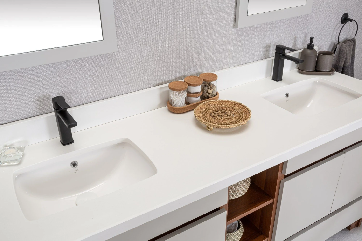 Jussara 3-delige Badkamermeubelset | MDF Met Melaminecoating | Aanrechtblad Van Kwarts