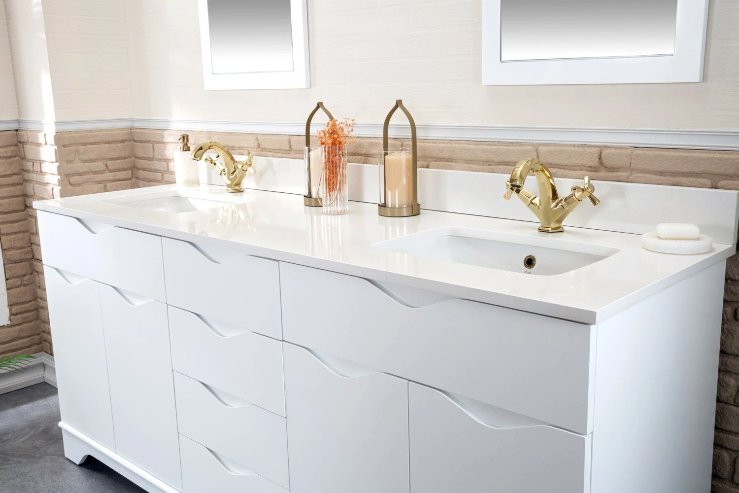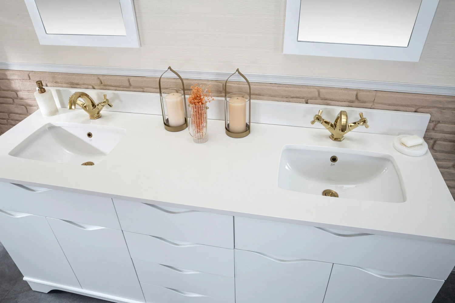 Jussara 3-delige Badkamermeubelset | Wit, Kwarts Aanrechtblad