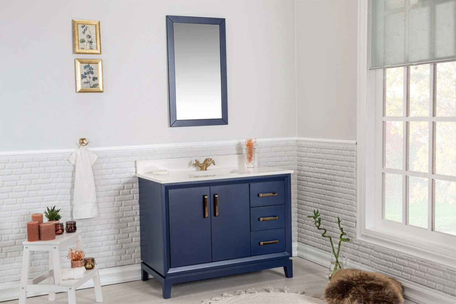 Jussara Badkamermeubelset | 2-delig | 100% Massief Hout | Aanrechtblad Van Kwarts | Donkerblauw