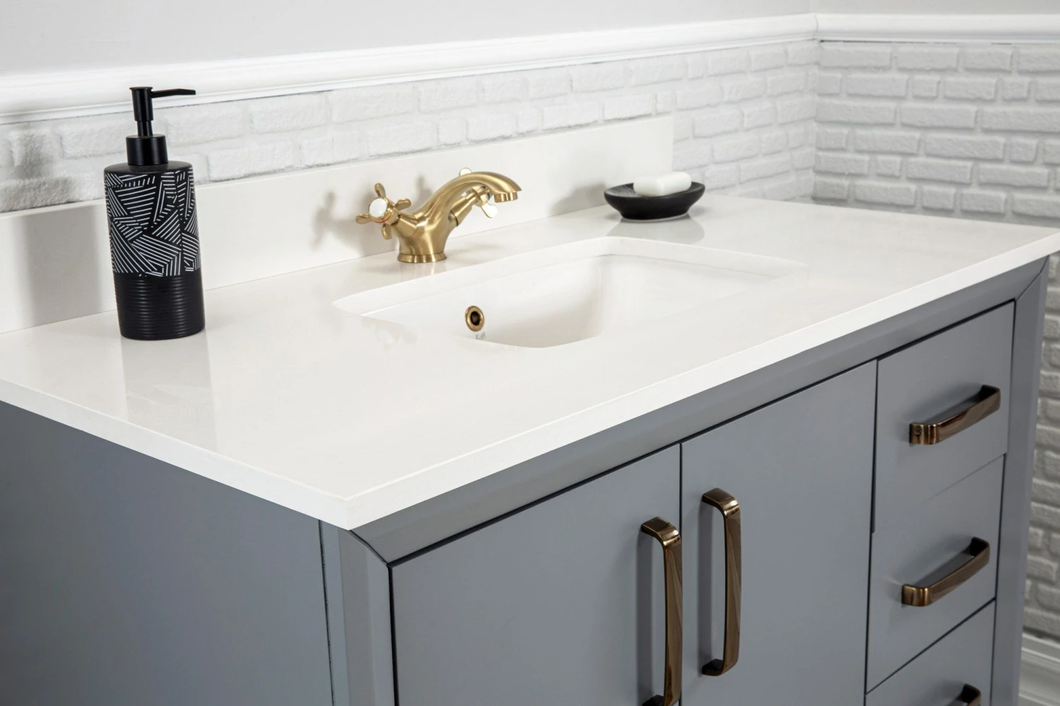 Jussara Badkamermeubelset | 2-delig | 100% Massief Hout | Kwartsblad Wit | Donkergrijs