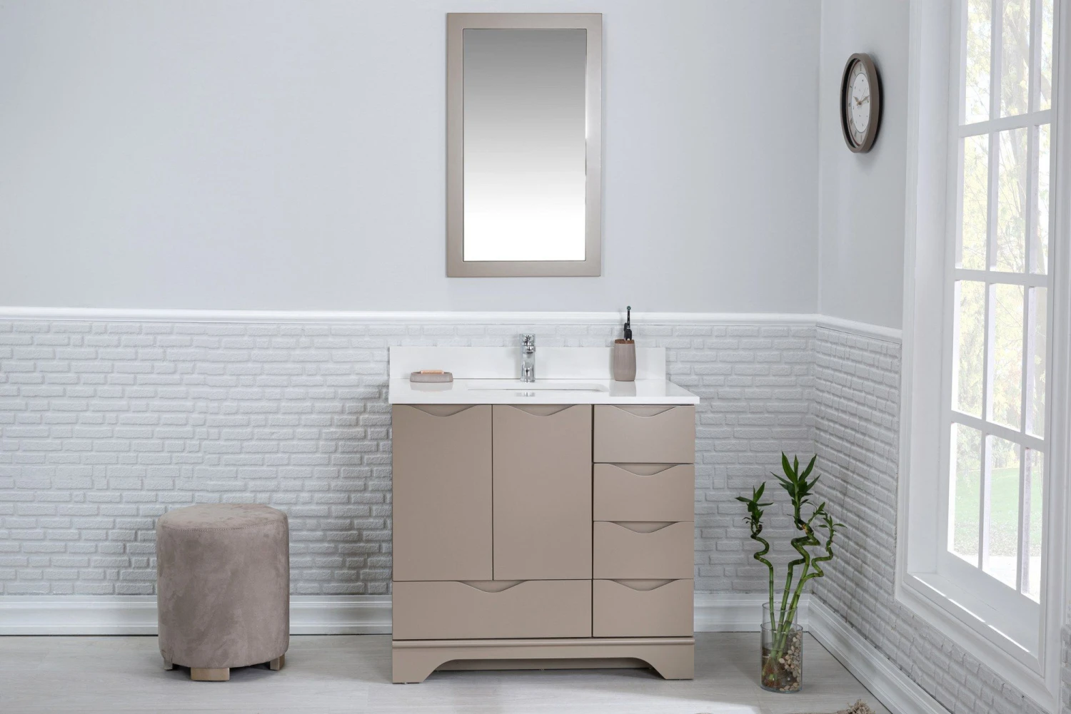 Maak kennis met de Jussara badkamermeubelset, een prachtige aanvulling voor elke badkamer die stijl, functionaliteit en duurzaamheid combineert. Deze 2-delige set is gemaakt van 100% gelakt MDF (SOLID WOOD) met een dikte van 18 mm, wat zorgt voor een stevige en duurzame constructie. Een van de belangrijkste kenmerken van deze badkamermeubelset is het aanrechtblad, dat gemaakt is van 0 WIT KWARTZ. Dit materiaal straalt niet alleen elegantie en verfijning uit, maar is ook zeer duurzaam en bestand tegen vlekken en krassen. De porseleinen onderbouwwastafel voegt een vleugje luxe toe aan het algehele ontwerp. Met een lade van 100% MARINE HOUT en een dikte van 12 mm is deze badkamermeubelset gemaakt om de vochtbelastende omgeving van een badkamer te weerstaan. Het mariene hout zorgt ervoor dat de lade in uitstekende conditie blijft, zelfs na langdurige blootstelling aan vocht.De set wordt gecompleteerd door een flotale spiegel die een extra laag functionaliteit en stijl toevoegt. De spiegel heeft afmetingen van 55 cm in de breedte en 80 cm in de hoogte, waardoor er voldoende reflectieruimte is voor de gebruiker. De cappuccino kleur van de spiegel vormt een mooie aanvulling op de algehele esthetiek van de set. Wat betreft afmetingen meet het Jussara badmeubel 90cm in de breedte, 22cm in de hoogte en 56cm in de diepte. Dit compacte maar ruime ontwerp zorgt voor efficiënte opslag en organisatie van badkamerbenodigdheden, waardoor het perfect is voor zowel kleine als grote badkamers.Naast zijn stijlvolle uiterlijk biedt de Jussara badkamermeubelset verschillende praktische voordelen. De massief houten constructie staat garant voor duurzaamheid en een lange levensduur, zodat deze set jarenlang een centraal punt in je badkamer zal blijven. De 18 mm dikte van het hout draagt bij aan de robuustheid en zorgt voor een solide en stabiele basis. De porseleinen onderbouwwastafel is niet alleen visueel aantrekkelijk, maar ook gemakkelijk schoon te maken. Het gladde oppervlak voorkomt de ophoping van vuil, waardoor onderhoud een fluitje van een cent is. Het witte kwarts aanrechtblad voegt een vleugje luxe en verfijning toe aan je badkamer, terwijl de weerstand tegen vlekken en krassen zorgt voor een vlekkeloos en ongerept uiterlijk.Met de 100% zeehouten lade kun je gerust zijn in de wetenschap dat het bestand is tegen het vocht in een badkameromgeving zonder krom te trekken of te verslechteren. Deze eigenschap verhoogt de levensduur van deze badkamermeubelset, waardoor het een waardevolle investering is.Over het geheel genomen is de Jussara badkamermeubelset een perfecte mix van stijl,