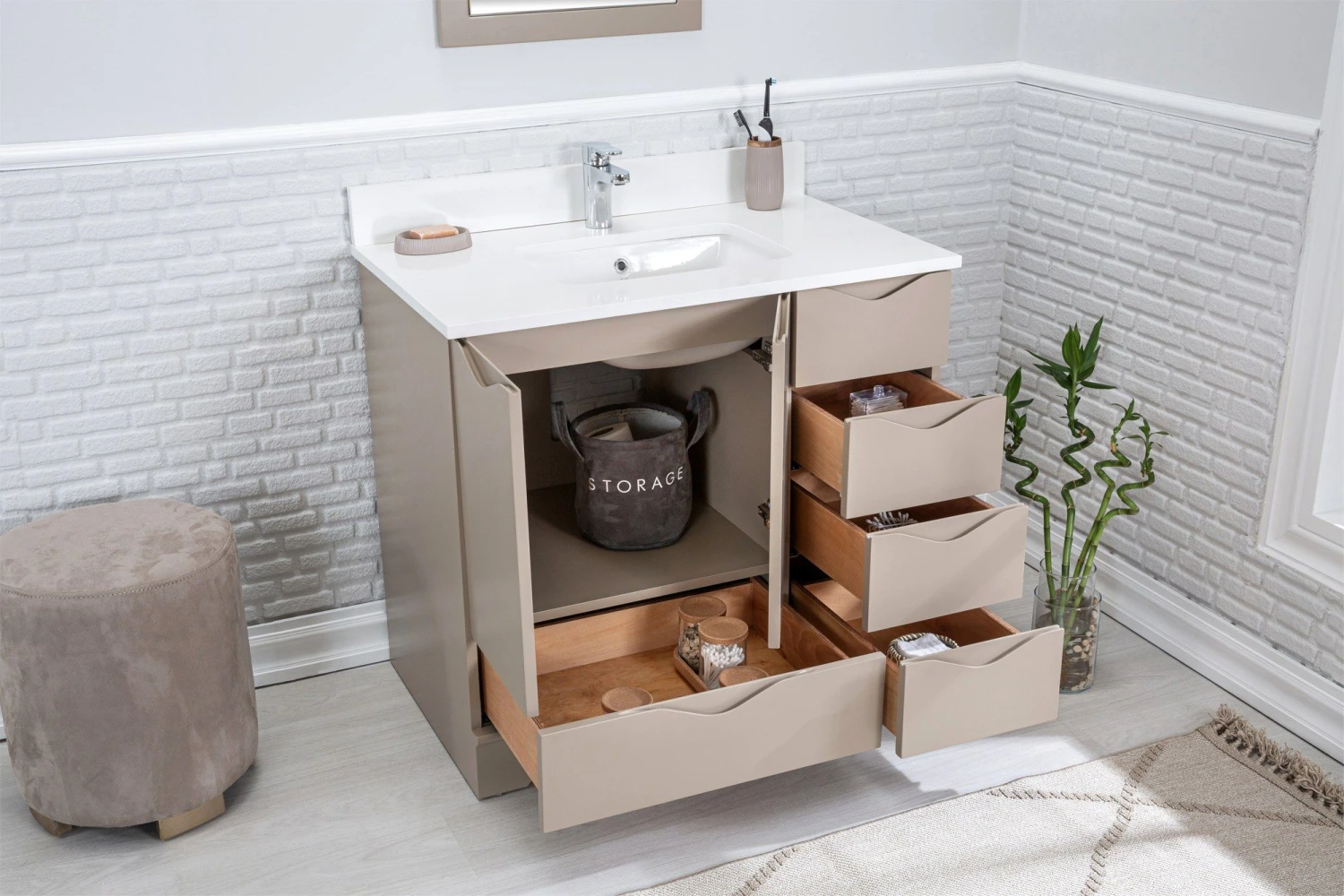 Jussara Badkamermeubelset: 2-delig | Cappuccino | 100% Massief Hout En Kwarts
