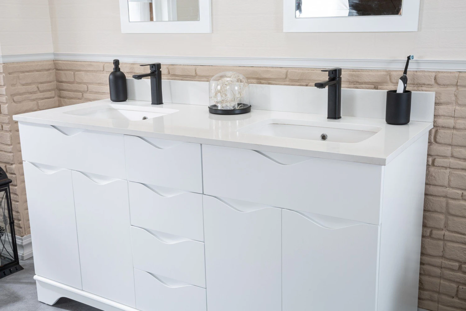 Jussara Badkamermeubelset – 3-delig | 100% Massief Hout | Kwarts Werkblad | Witte Kleur