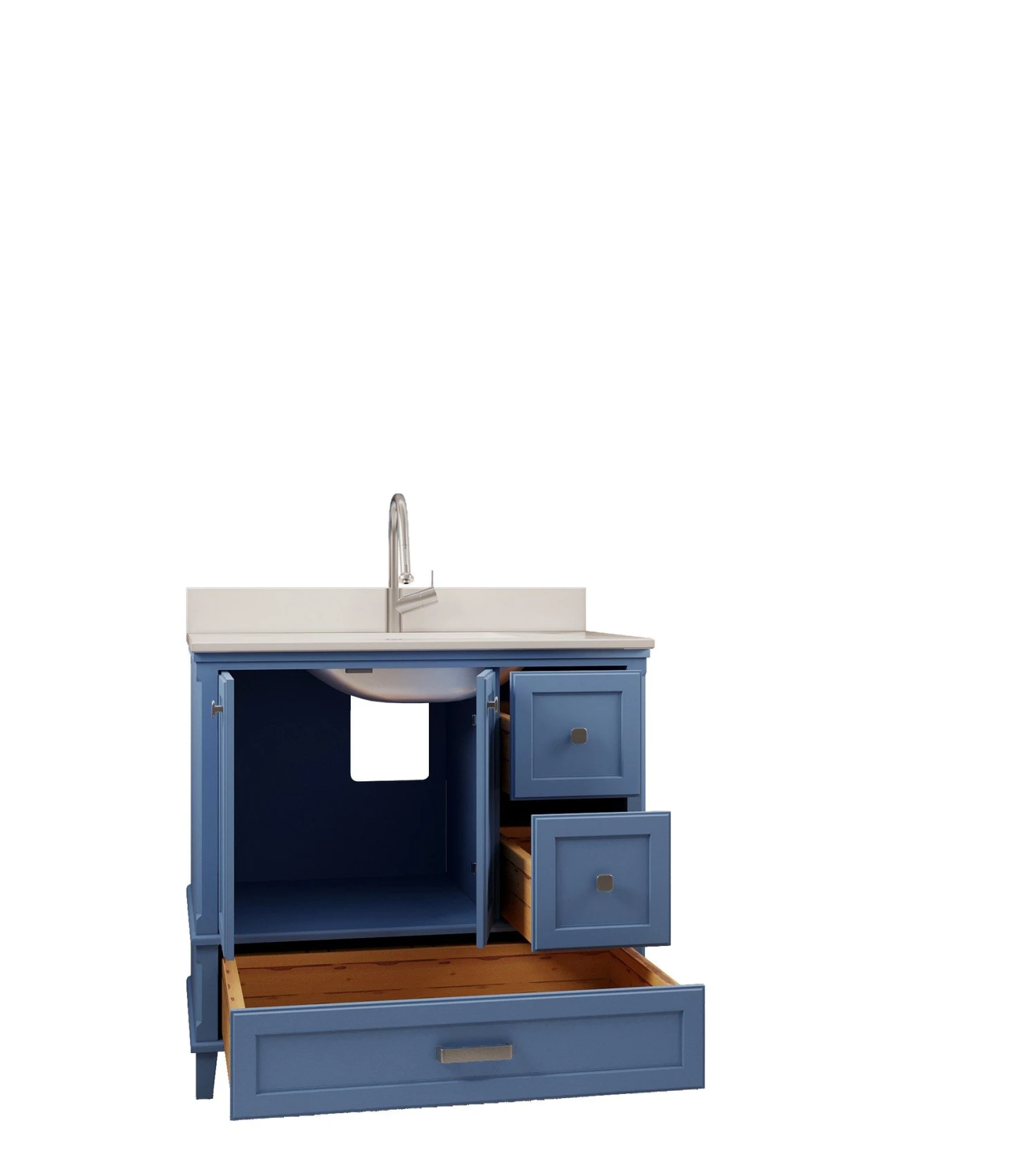 Jussara Badkamermeubelset | Blauw | 2st | LEKKER MDF | Kwarts Aanrechtblad | Lade Van Marien Hout