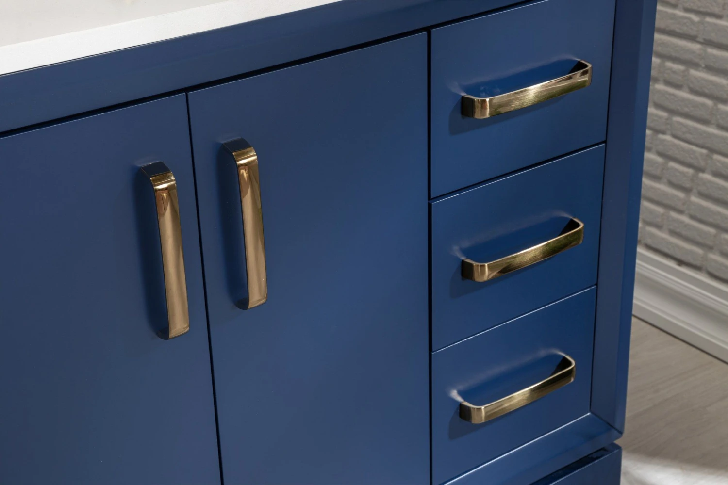 Maak kennis met de Jussara badkamermeubelset, een 2-delig ensemble ontworpen om de esthetiek en functionaliteit van je badkamer te verbeteren. Deze meubelset is met uiterste precisie en aandacht voor detail gemaakt van 100% gelakt MDF (massief hout) met een dikte van 18 mm, wat duurzaamheid en een lange levensduur garandeert.Een van de opvallende kenmerken van deze set is het aanrechtblad, dat gemaakt is van 100% wit kwarts. Wit kwarts staat bekend om zijn elegantie en veerkracht en voegt een vleugje luxe toe aan elke ruimte. De lade van de Jussara badkamermeubelset is gemaakt van 100% marien hout, dat bekend staat om zijn weerstand tegen vocht en vocht. Met een dikte van 12 mm biedt de lade voldoende opbergruimte voor al je badkamerbenodigdheden, zodat ze georganiseerd en gemakkelijk toegankelijk blijven. De constructie van marien hout zorgt ervoor dat de lade jarenlang stevig en betrouwbaar blijft.Een essentieel onderdeel van deze set is de flotale spiegel, die niet alleen een praktisch doel dient maar ook de visuele aantrekkingskracht van je badkamer vergroot. De spiegel heeft een breedte van 55 cm en een hoogte van 80 cm en biedt een royaal spiegeloppervlak. De donkerblauwe kleur is een aanvulling op het algehele ontwerp van de meubelset en zorgt voor een harmonieuze en verfijnde uitstraling. Om de esthetische aantrekkingskracht en functionaliteit verder te verbeteren, is de Jussara badkamermeubelset voorzien van bronzen handgrepen. Deze handgrepen voegen een subtiel vleugje glamour en elegantie toe aan het meubel, waardoor het een pronkstuk wordt in je badkamer. De combinatie van de donkerblauwe spiegel en bronzen handgrepen creëert een samenhangende en eigentijdse look.De afmetingen van het badmeubel in deze set zijn als volgt: breedte: 90cm, hoogte: 22cm, en diepte: 56cm. Deze ideale afmetingen zorgen ervoor dat het badmeubel goed past in de meeste badkamers en voldoende opbergruimte biedt, terwijl het een strak en compact ontwerp behoudt.Naast het stijlvolle en moderne ontwerp biedt de Jussara badkamermeubelset tal van voordelen. Het gebruik van hoogwaardige materialen, zoals gelakt MDF en marien hout, garandeert duurzaamheid en een lange levensduur. Het 100% witte kwarts aanrechtblad en de porseleinen onderbouwwastafel zijn bestand tegen vlekken en eenvoudig schoon te maken, zodat je ze probleemloos kunt onderhouden. Dankzij de ruime opbergruimte in de lade kun je je badkamerbenodigdheden georganiseerd en gemakkelijk toegankelijk houden. Bovendien voegt de flotale spiegel diepte en helderheid toe aan je badkamer, waardoor je badkamer nog beter tot zijn recht komt.