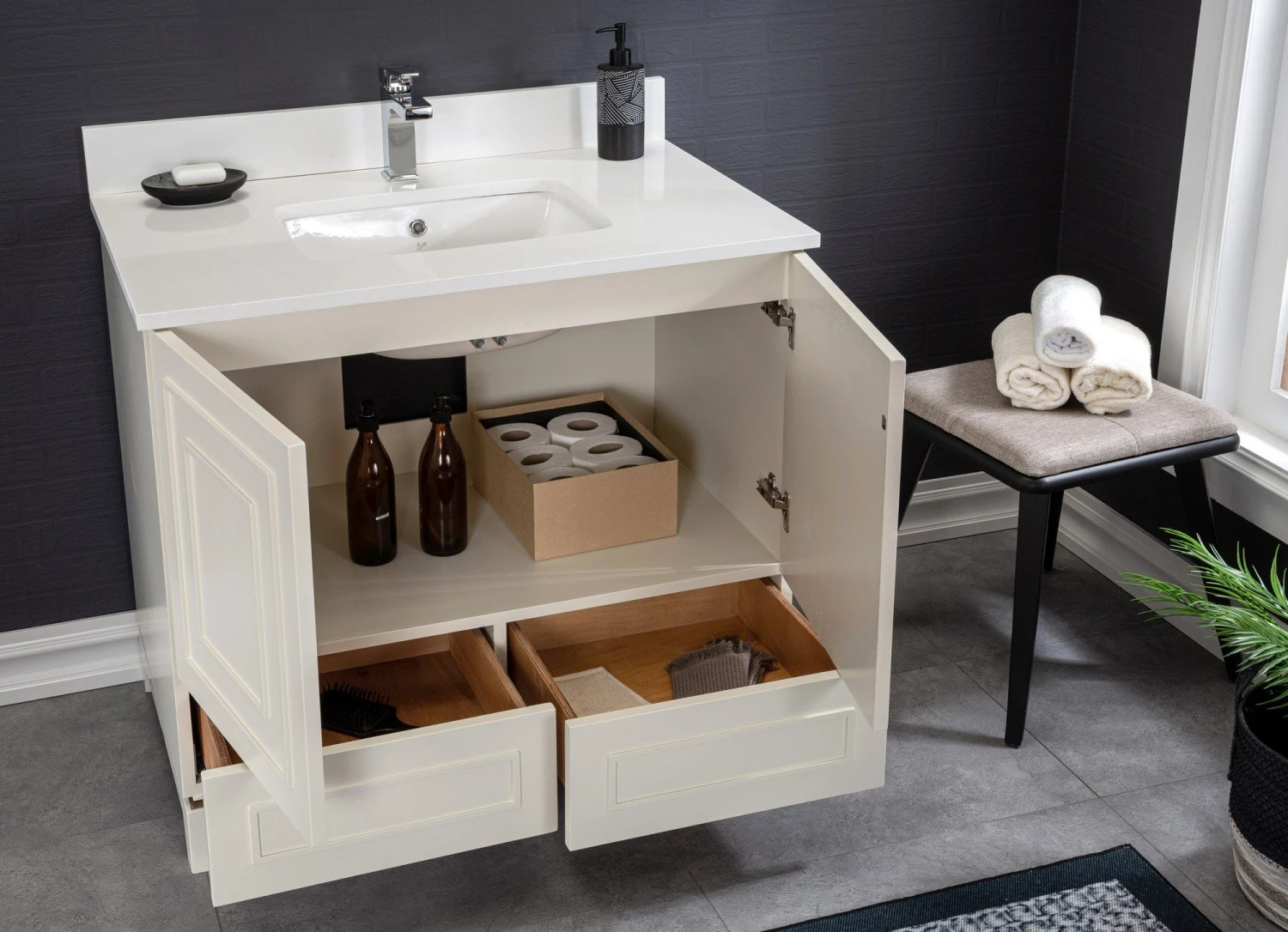 Jussara Badkamermeubelset | Hout En Kwarts | Crème