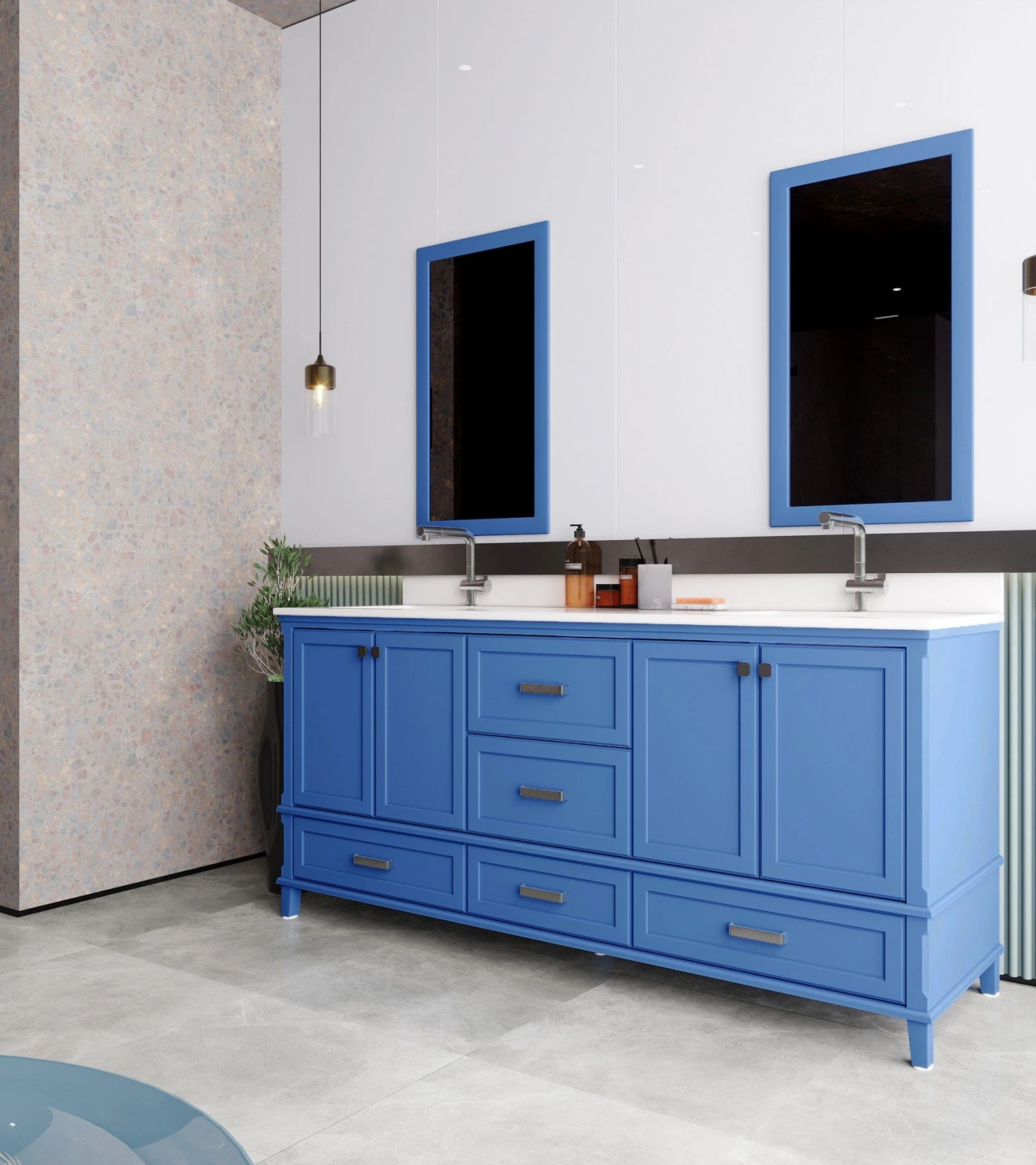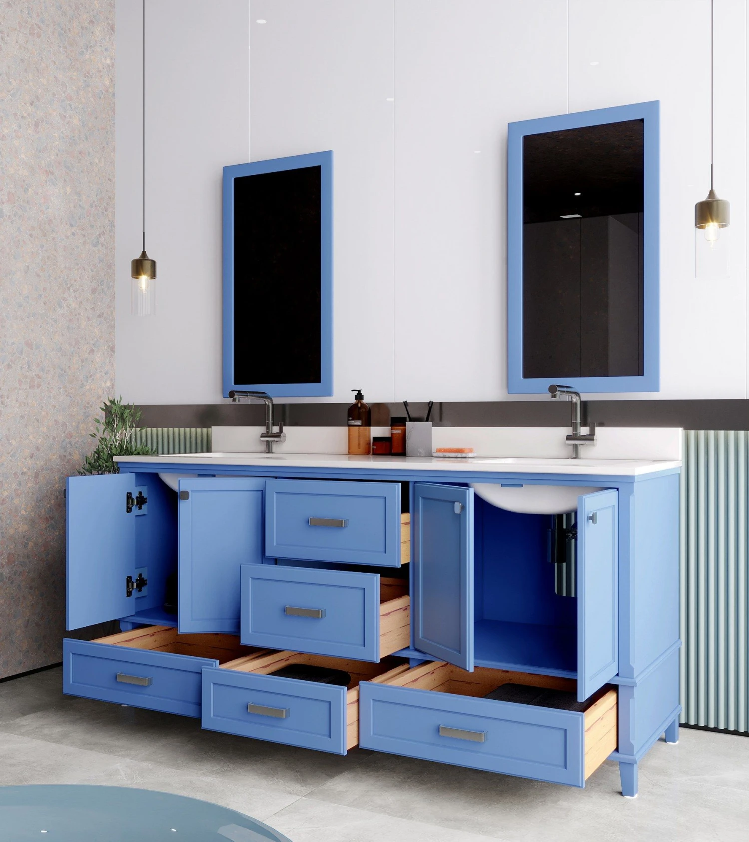 Jussara Badkamermeubelset | Massief Hout | Kwarts Werkblad | Blauw