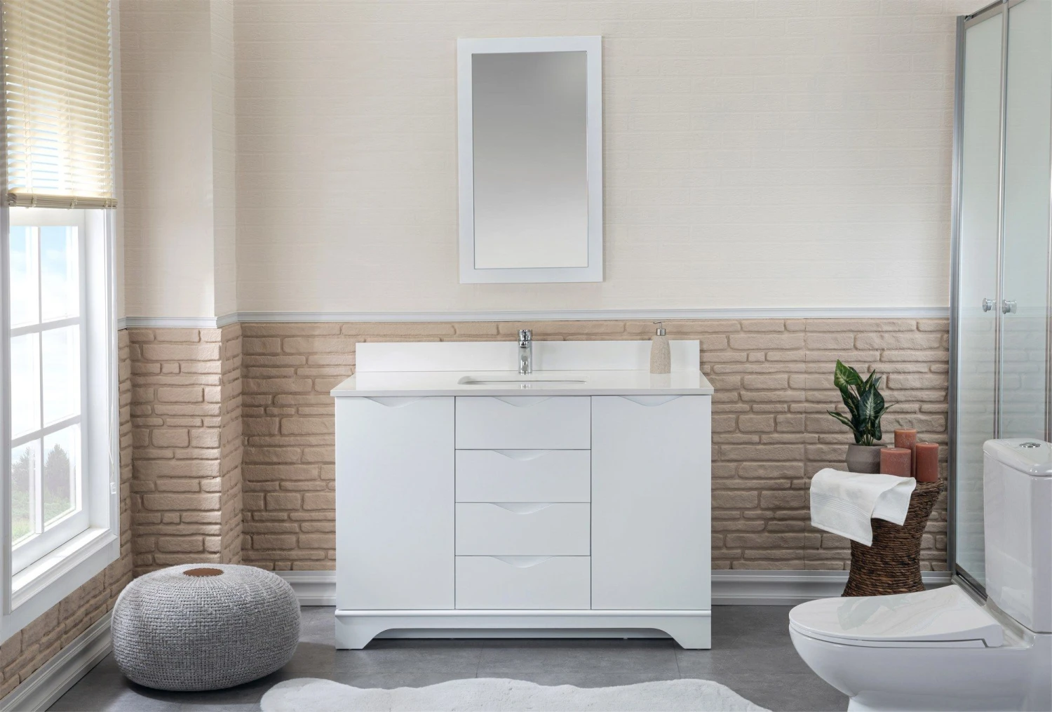 Jussara Badkamermeubelset | Wit | 100% Massief Hout | Aanrechtblad Van Kwarts
