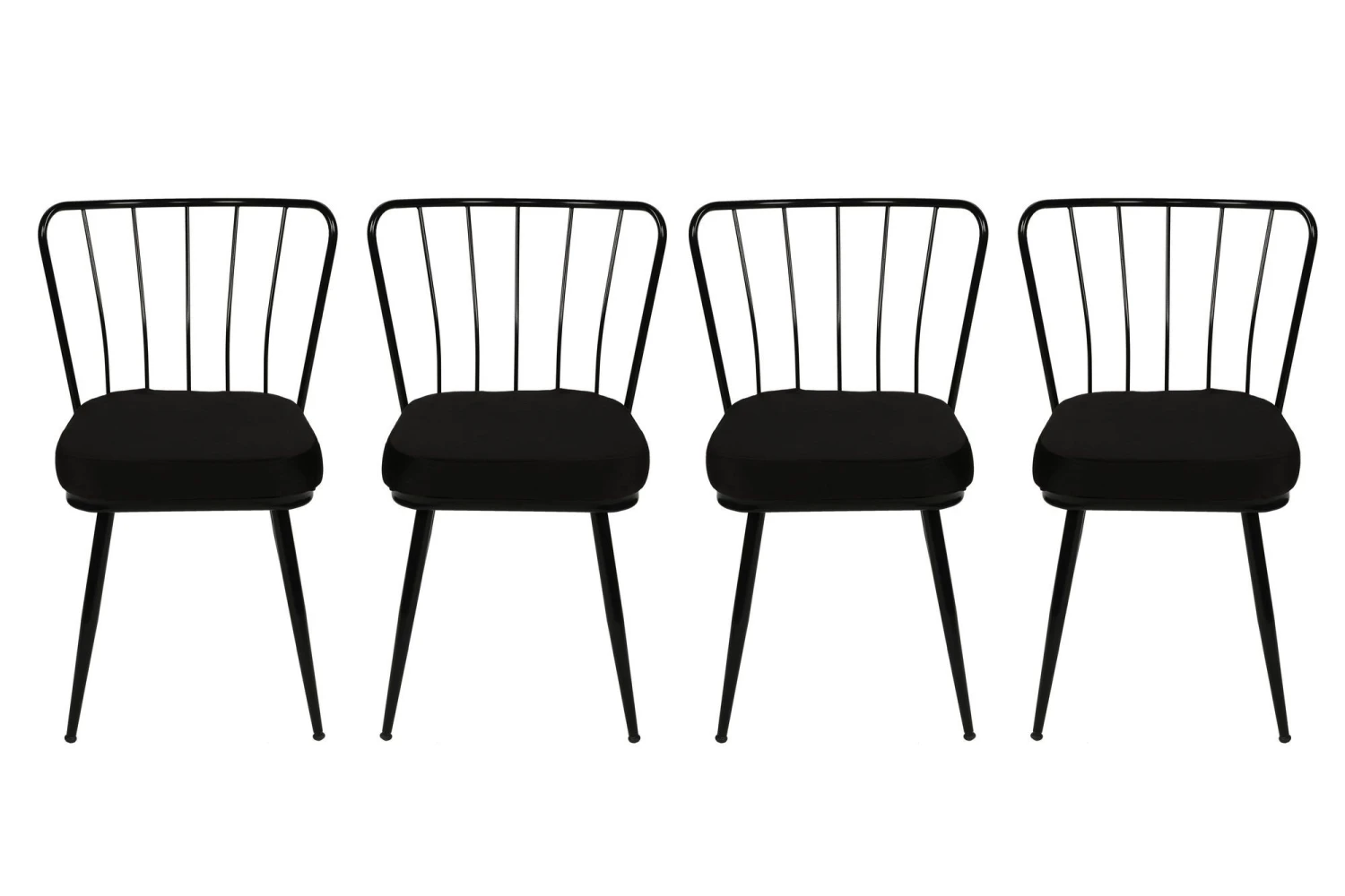 Kieran 4-delige Metalen Stoelenset | Fluwelen Stof En Metaal | Zwart