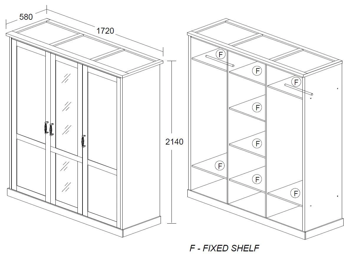 Deze Emily kledingkast bestaat uit spaanplaat met een lichtgrijs eikdecor en een bruine afwerking. Open de drie draaideuren met de elegante handvaten. De kast telt twee kledingroedes en acht legplanken. Deze ruime kleerkast is ook ideaal voor in een meisjeskamer.