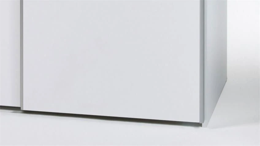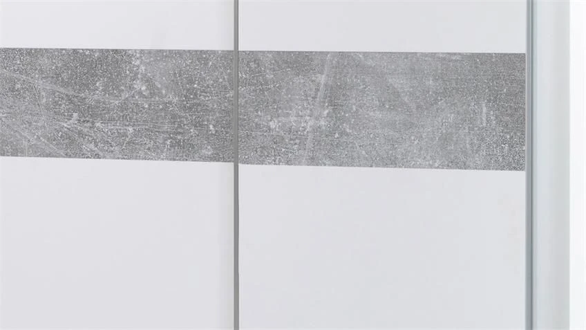 Kledingkast Salamanca met 2 zwevende schuifdeuren, gemaakt uit spaanplaat in wit en een horizontale band in betondecor.