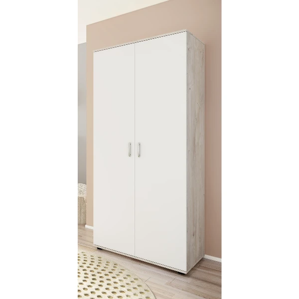 Kleerkast Halula 2 Deuren 1 Kledingroede En 2 Legplanken-wit/eik
