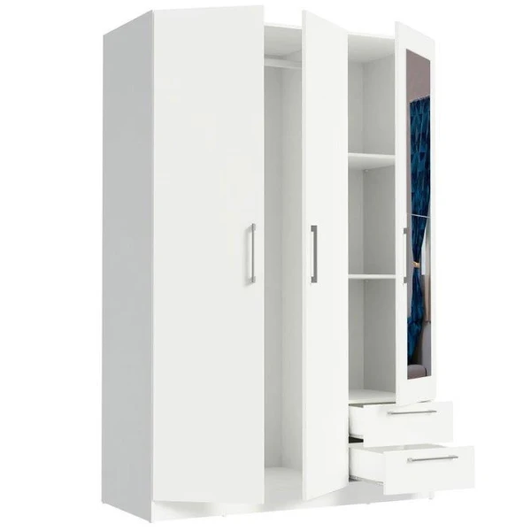 Kleerkast Rhea, 3 Draaideuren, 2 Legplanken, 1 Kledingroede En 2 Lades-wit