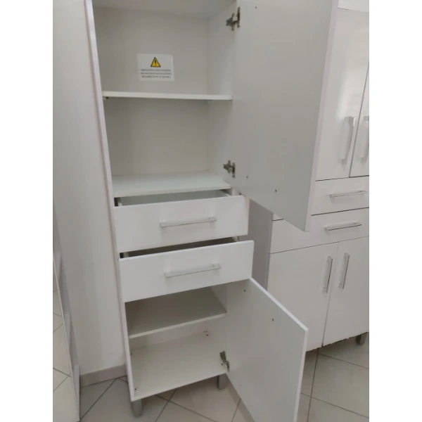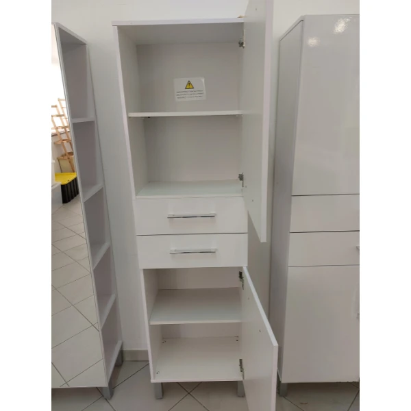 Kolomkast Tara, vervaardigd uit witte spaanplaat en uitgerust met 2 deuren en 2 lades.