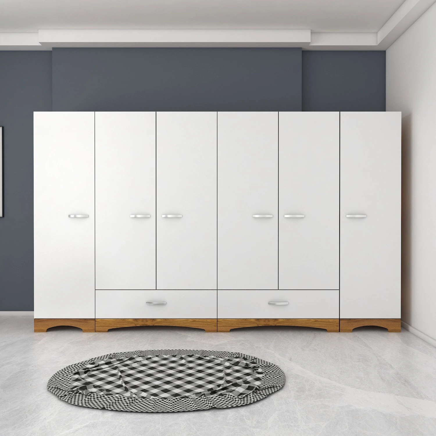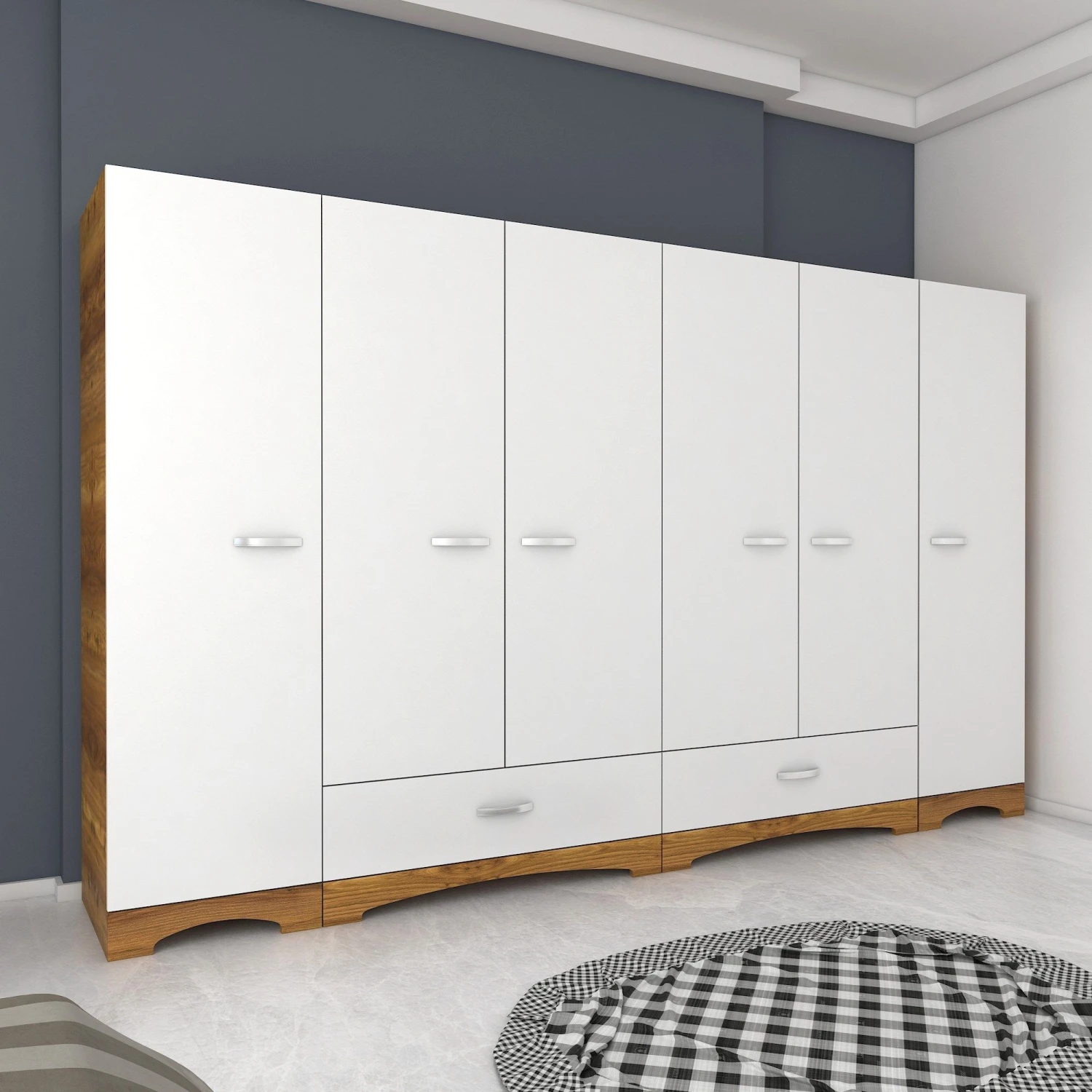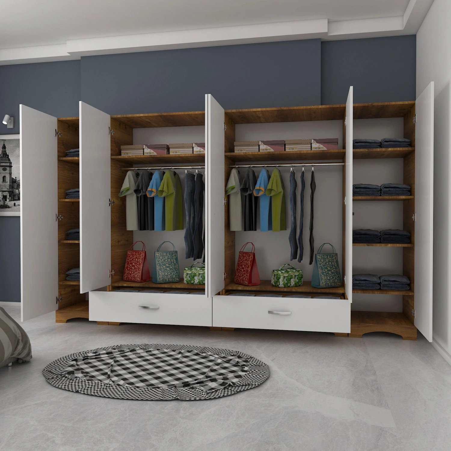 Met een breedte van 243 cm, hoogte van 181 cm en diepte van 47 cm biedt deze kledingkast voldoende opbergruimte. Je kunt je kleding, schoenen, accessoires en andere persoonlijke spullen netjes ordenen, zodat je geen rommel meer hebt. Je hoeft niet meer naar je favoriete outfit te zoeken of je accessoires uit het oog te verliezen; alles is georganiseerd en binnen handbereik.