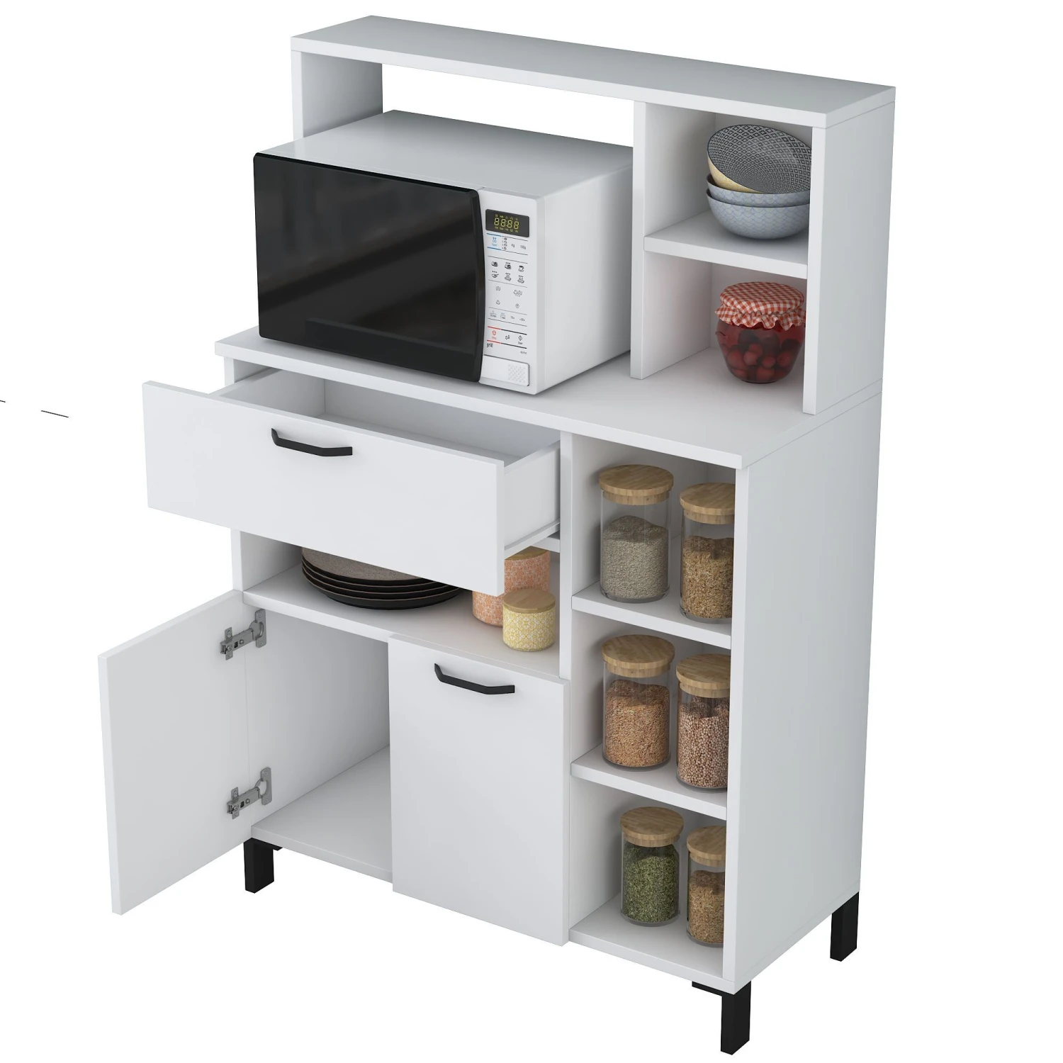 De Locelso multifunctionele kast heeft een klassieke witte kleur, die een vleugje verfijning toevoegt aan elke kamer. De neutrale tint sluit naadloos aan bij het bestaande interieur, waardoor het een ideale keuze is voor elke stijl of thema. Of het nu voor je huis, kantoor of winkelruimte is, deze kast is een stijlvolle aanvulling die bij elk interieur past.