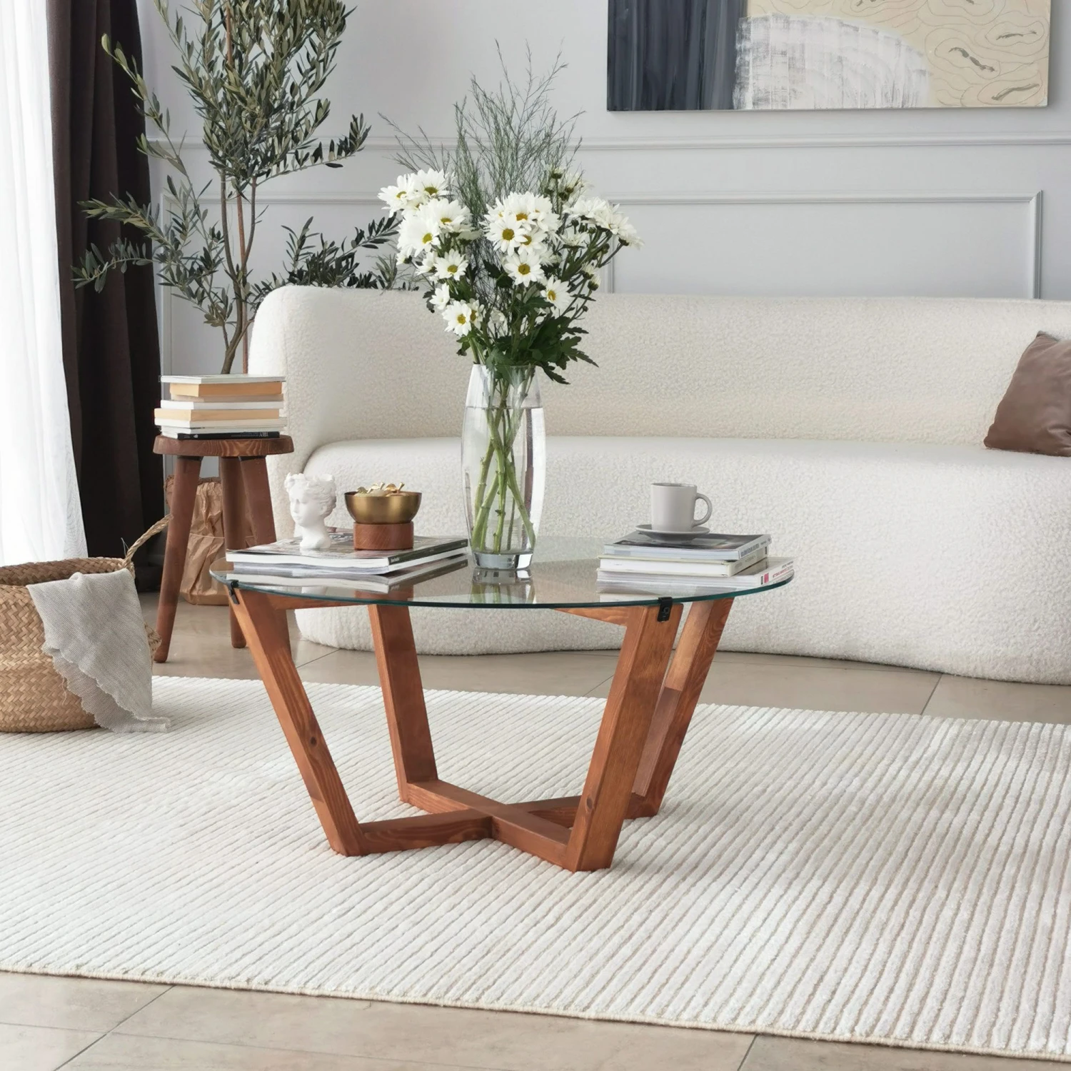 De Locelso Salontafel heeft een 100% gehard glazen blad en een massief houten frame voor duurzaamheid. Met afmetingen van 75x35x75 cm voegt hij een vleugje houten elegantie toe aan je ruimte.