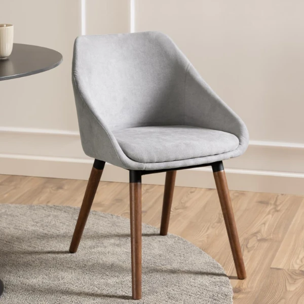 Nils Eetkamerstoel Met Armleuning: Stof Grijs, Walnoot Onderstel