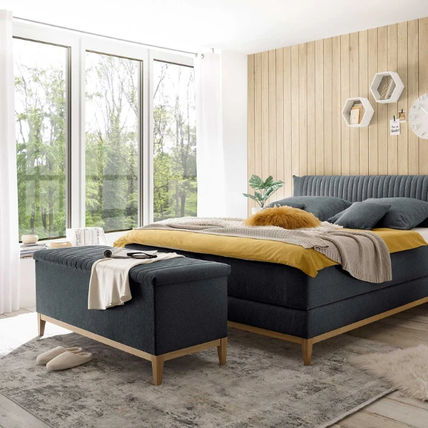 Ga helemaal op in de “hygge”-trend met de collectie Arhus. Deze opbergkoffer is gemaakt uit spaanplaat en is bekleed met antracietkleurig polyester. De houten pootjes zorgen voor een warm accent. De koffer biedt handige opbergruimte voor kussens, dekens of andere spullen. De zachte schuimvulling in het deksel zorgt ervoor dat je de koffer ook kunt gebruiken als extra zitplaats. Combineer hem met de boxsprings Arhus in de slaapkamer, of gebruik hem als halbankje.