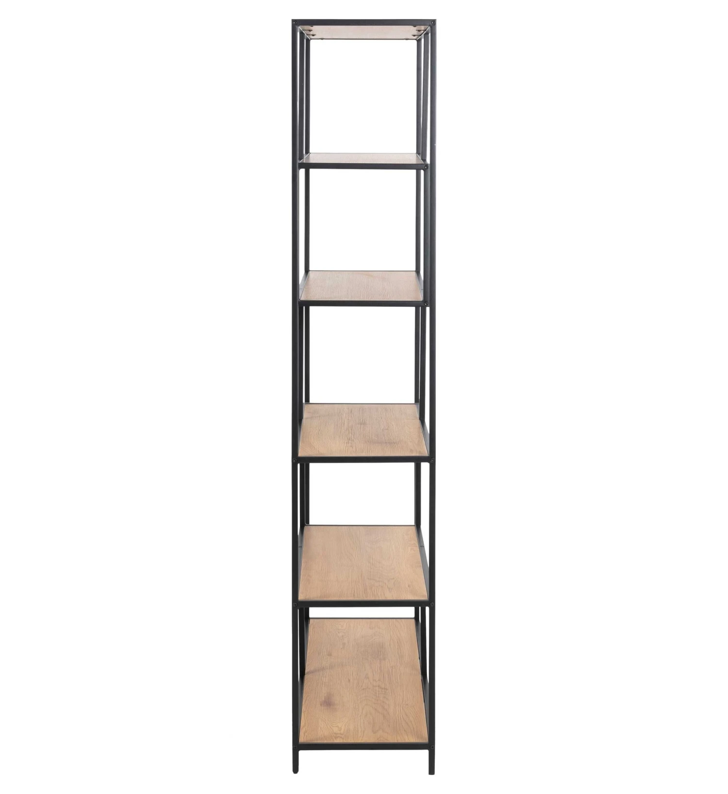 Rek Dover met wilde eikdecor en mat-zwart frame. Uitgerust met 4 legplanken.