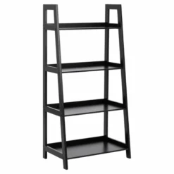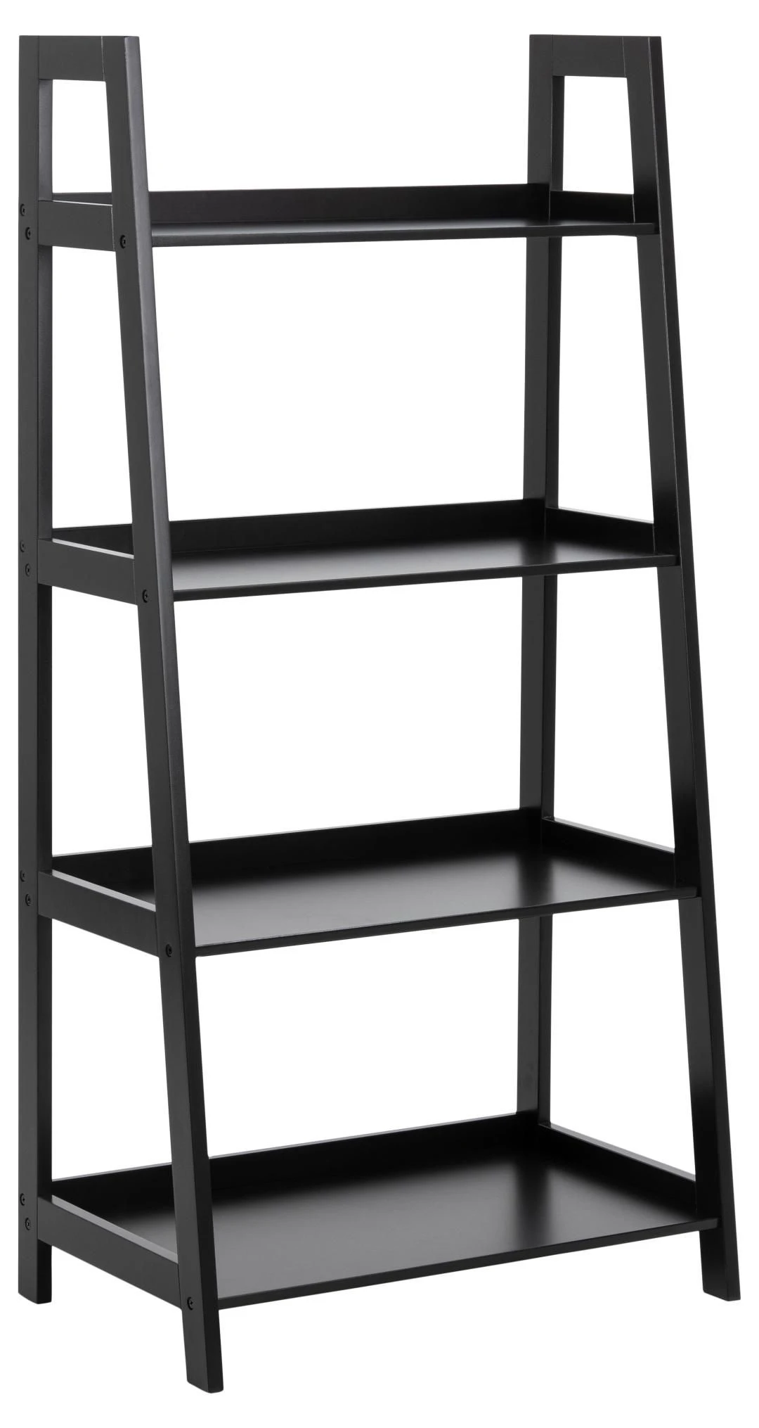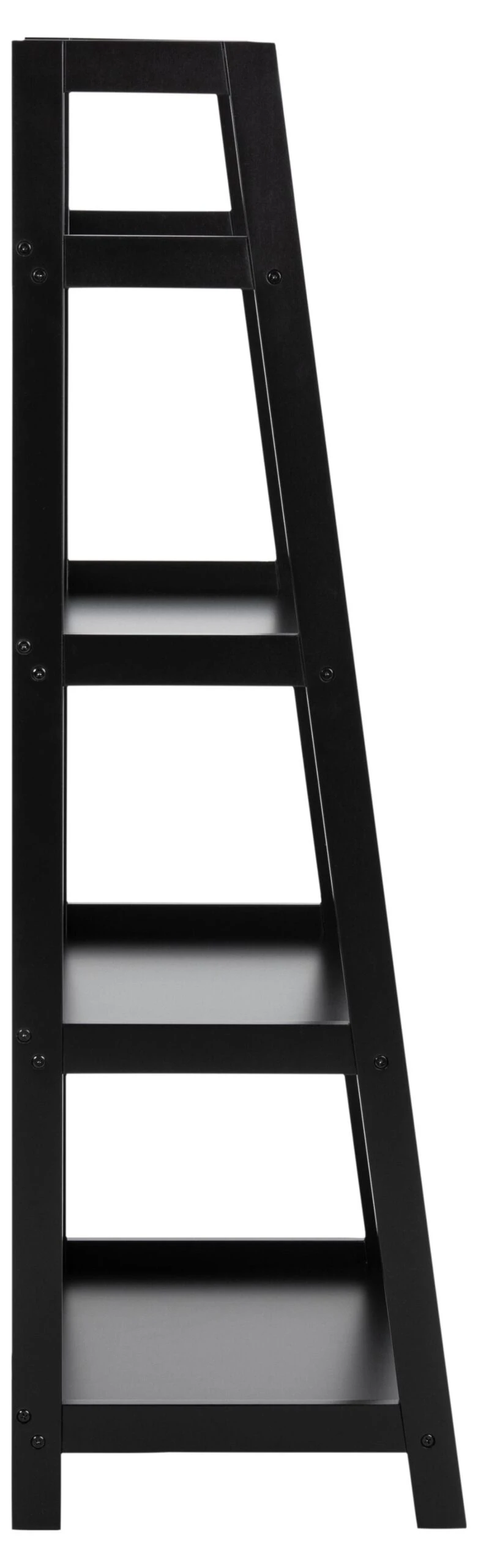 Het Wally-opbergrek is volledig open en is voorzien van 4 legplanken. Dankzij zijn minimalistische design past het in elk interieur. Plaats er decoratiestukken op om in een handomdraai je kamer op te fleuren. Je kan dit opbergrek ook voor praktische doeleinden gebruiken. Er kan namelijk makkelijk een groot aantal boeken en borden op geplaatst worden. Kortom, een multifunctioneel opbergrek, dat gemaakt is uit MDF en afgewerkt is met een zwarte laklaag.