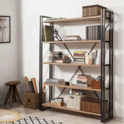 Boekenkast Fantine heeft een industriële look door zijn zwarte metalen frame. Het warme decor van Atlantische pijnboom gaat goed samen met het zwart van het frame. Boekenkast Fantine heeft met zijn 5 legplanken voldoende opbergruimte voor uw geliefde boekencollectie. Werk de look af met enkele industriële decoratieve objecten. U kunt indien nodig de kast tegen de muur monteren.