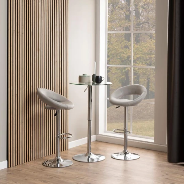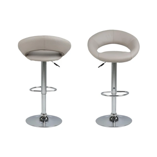 Plump Barkruk: PU Grijs, Chromen Onderstel, Gas Lift En Draaibaar