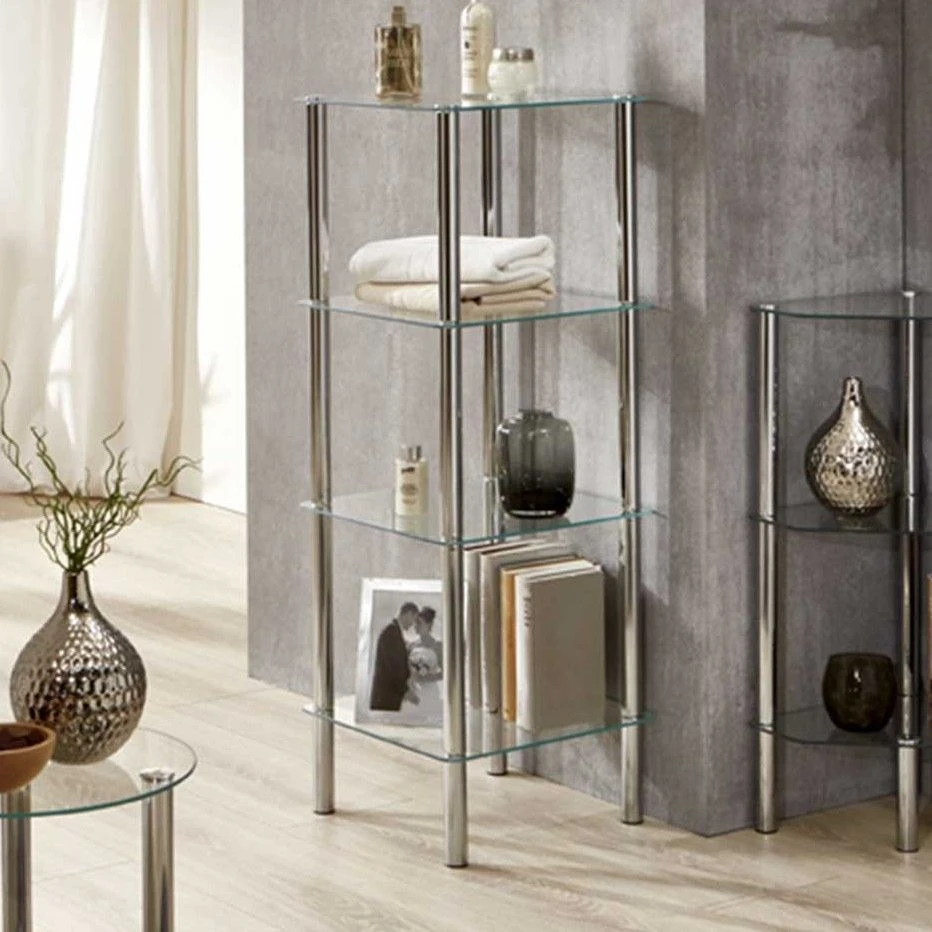 Rek Heiko 39cm, 4 Legplanken – Chroom/glas