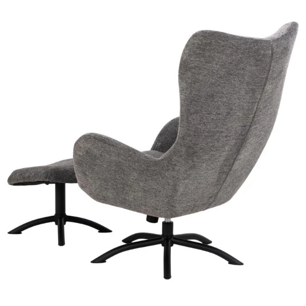 Relaxfauteuil Talgar, gemaakt uit zwart gepoedercoat metaal en bekleed met een grijze stof.