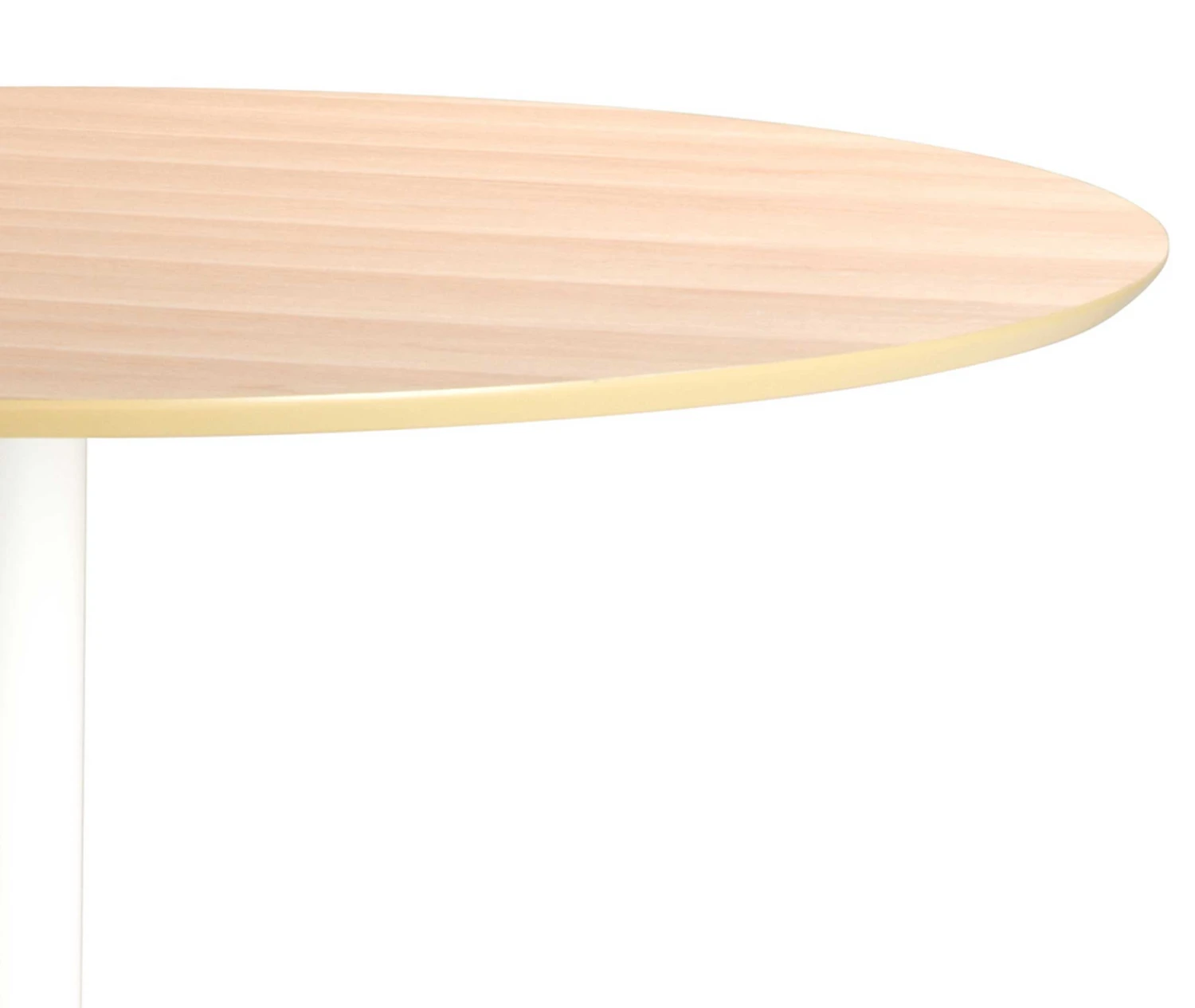 Ronde eettafel Ibiza, gemaakt uit mat eikfineer en een frame in wit metaal. Tafel geschikt voor 4 personen.
