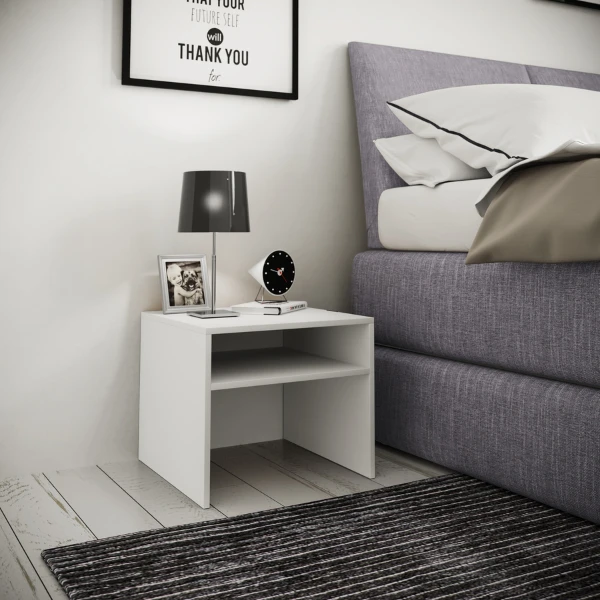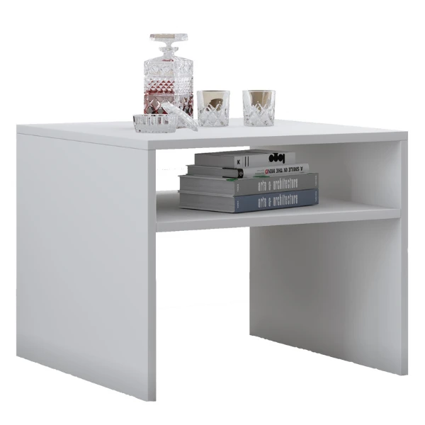 Salontafel Anavi is gemaakt uit gemelamineerde spaanplaat in wit. De salontafel bestaat uit 1 open vak.