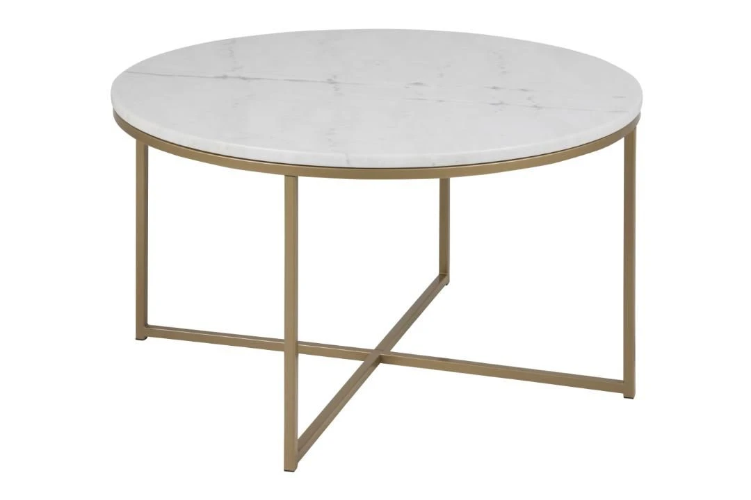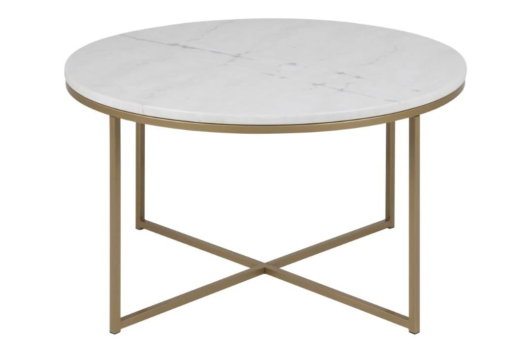 Salontafel Anika ø80cm – Wit Marmer/ Goud