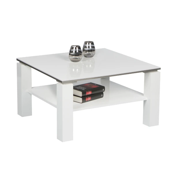 De vierkante, witte salontafel Barbry is een veelzijdig meubel voor de woonkamer. Het lichte en zuivere hoogglanswit is eenvoudig te combineren met tal van interieurstijlen. De praktische legplank zorgt er samen met het tafelblad in melamine voor dat je meer dan voldoende mogelijkheden hebt om je boeken, tijdschriften, afstandsbedieningen maar ook decoratie eenvoudig kwijt te kunnen. De aluminiumkleurige ABS-randen boven aan de tafelpoten in MDF maken het meubel compleet!