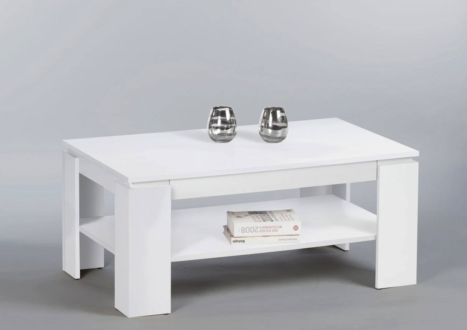 Salontafel Ford met 1 lade, gemaakt uit spaanplaat in wit.