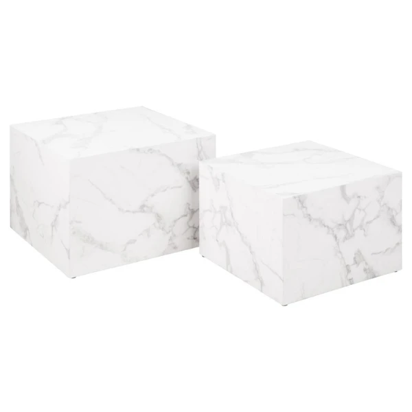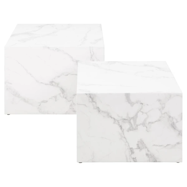 Salontafel Set Dice (2 Stuks, 58x58x40 Cm) – Wit Marmer