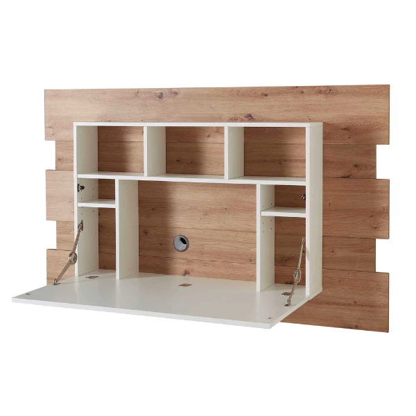 Secretaire Inovo 150x23x93cm uit MDF, afgewerkt in melamine in wit en eikdecor.